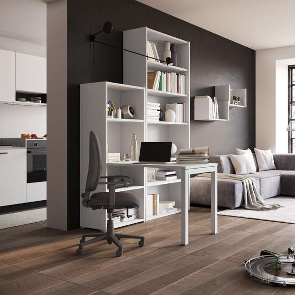 Scrivania, seduta e contenimento per lavorare bene anche in poco spazio.