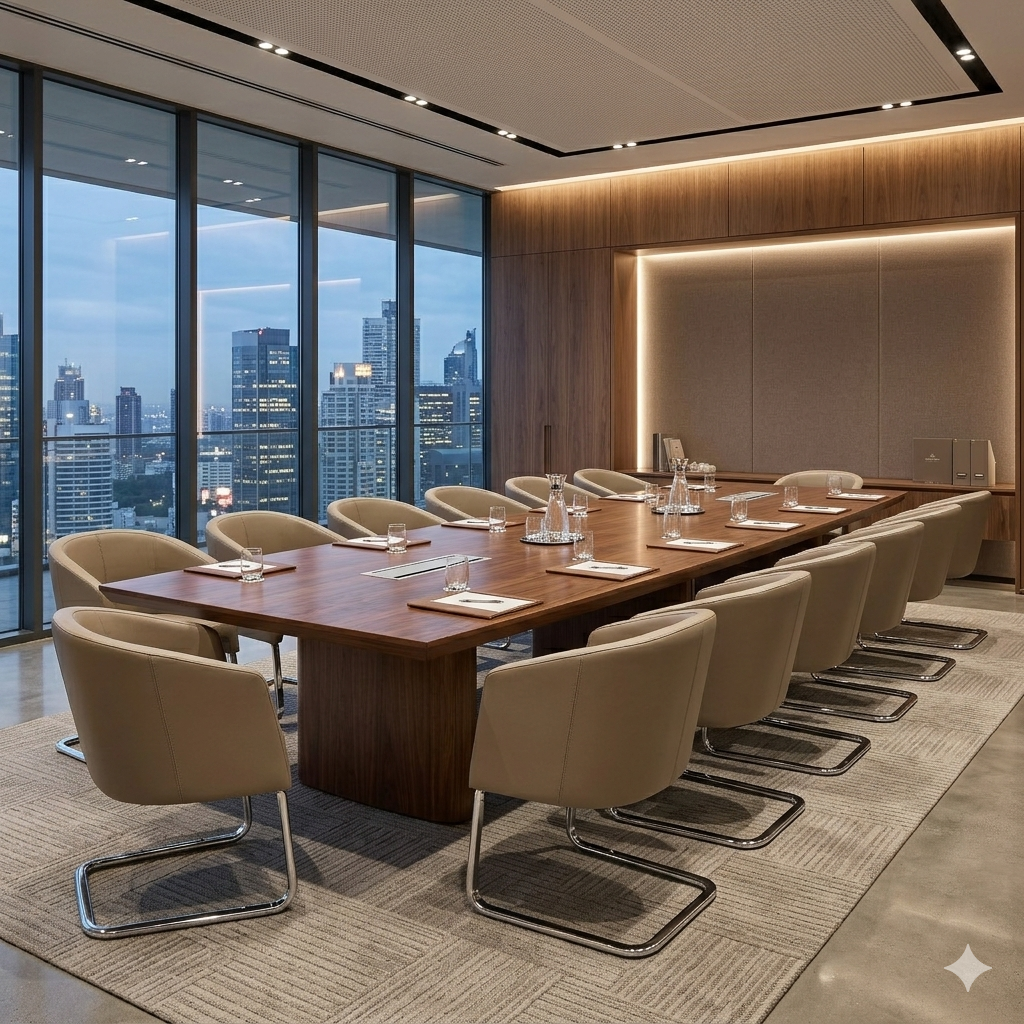 Sale meeting funzionali: tavoli, sedute e comfort acustico su misura.