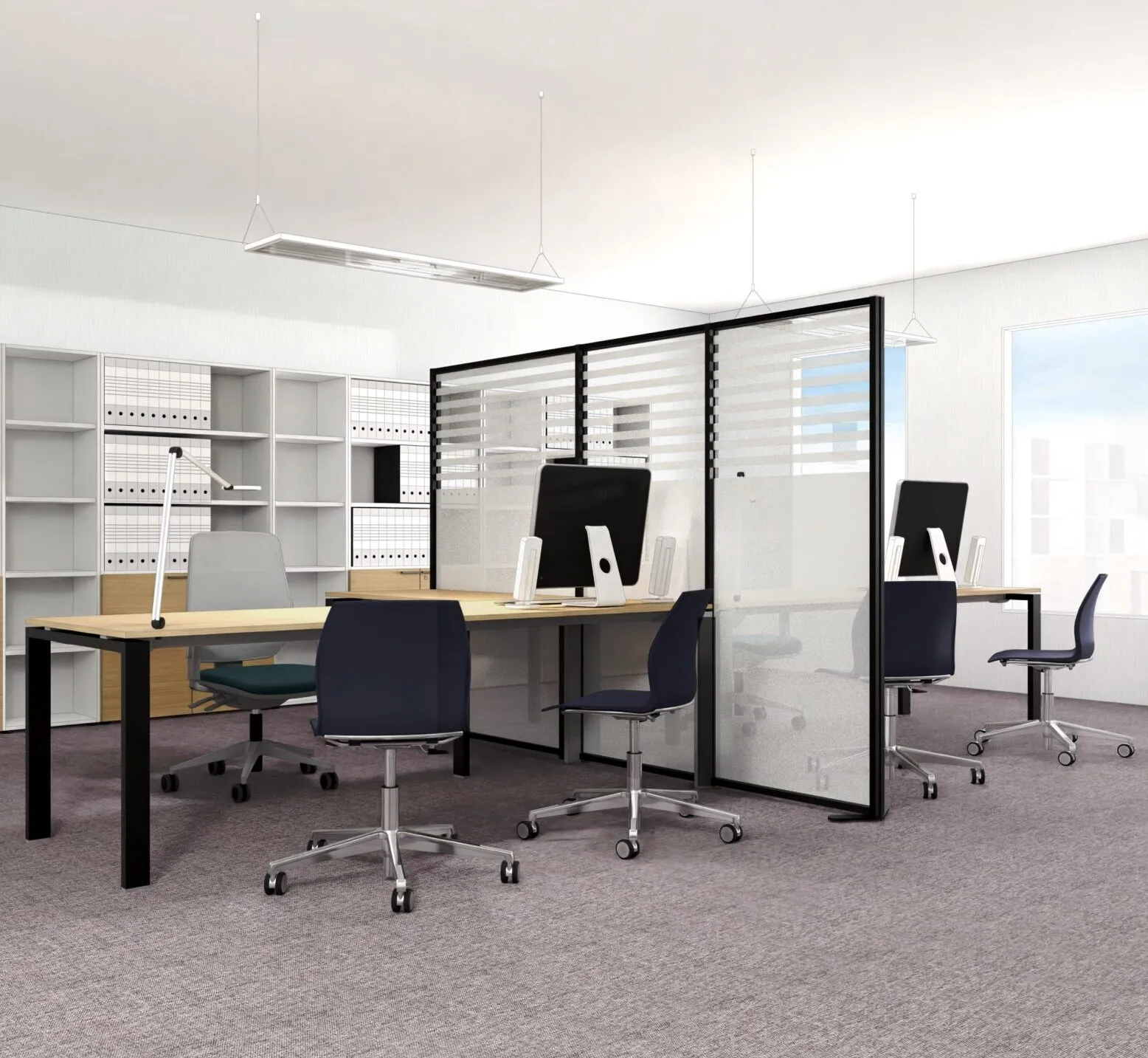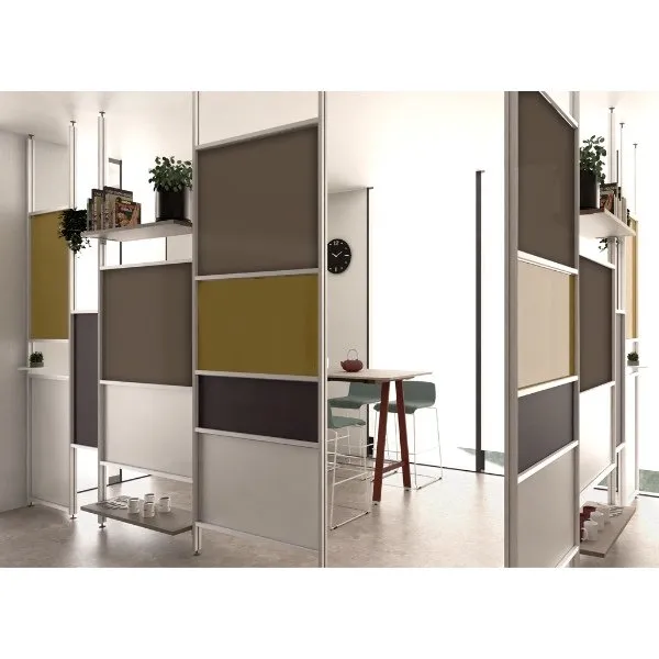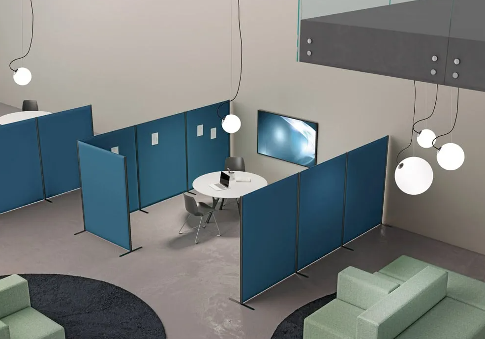 La necessità di isolare piccole zone dell’ufficio può richiedere l’utilizzo di paretine divisorie, soluzioni versatili che sanno dare vita a dei veri e propri mini-uffici isolati acusticamente e visivamente. Optare per delle pareti mobili e di ridotte dimensioni significa poter garantire all’ambiente di potersi evolvere secondo le esigenze lavorative.