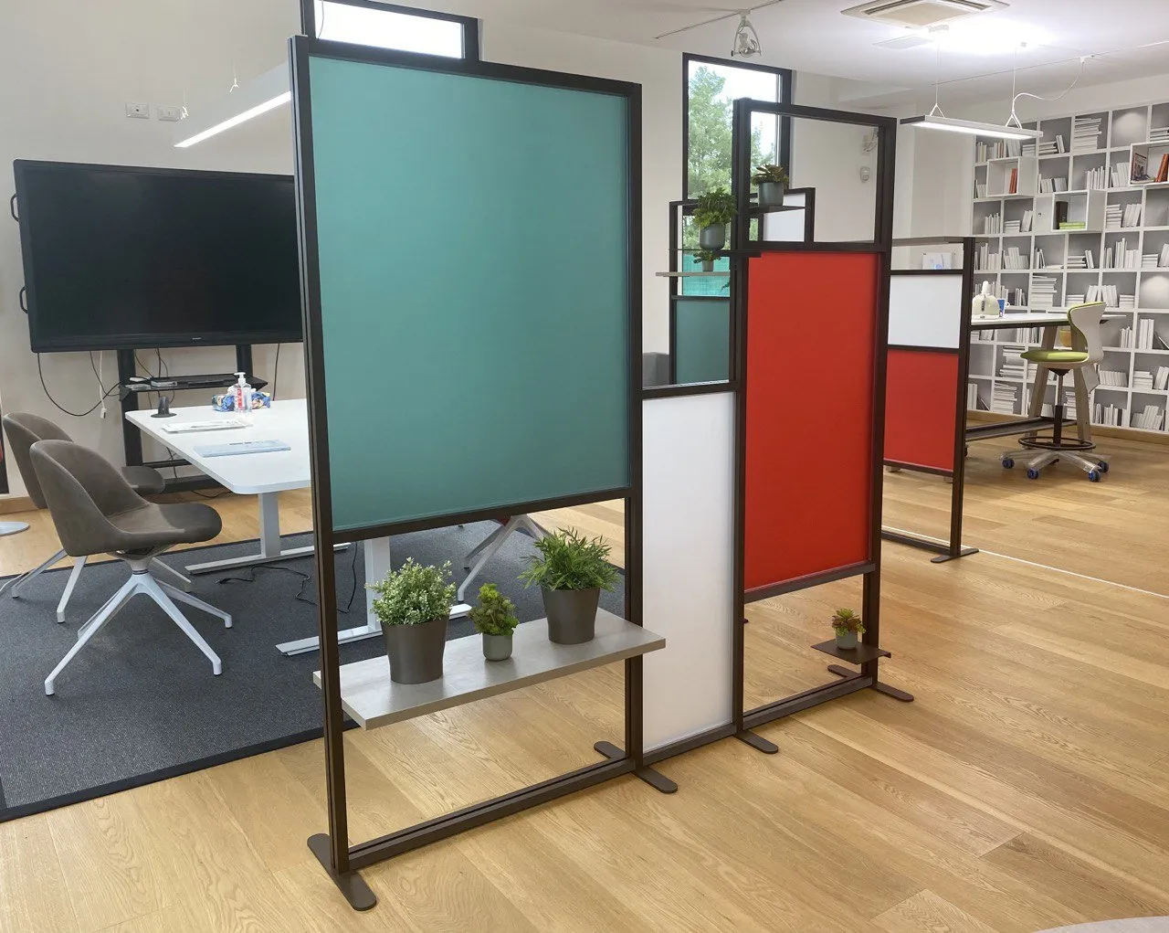 Grazie alle paretine divisorie è possibile rendere gli spazi ampi dell’ufficio più funzionali, ridurne il rumore e creare maggiore privacy. Vero e proprio oggetto d’arredo, le piccole pareti divisorie sono completamente adattabili e personalizzabili a livello di finiture, dimensioni, colori, forme e materiali. Le paretine sono inoltre generalmente completamente mobili e smontabili facilmente, per utilizzarle quando e dove lo si desidera senza creare interruzioni di lavoro. Scoprite i sistemi divisori per ufficio proposti da Office Planet, prodotti con alte performance in termini di privacy, il cui utilizzo è consigliato dove sia necessario raggiungere un comfort acustico e visivo.