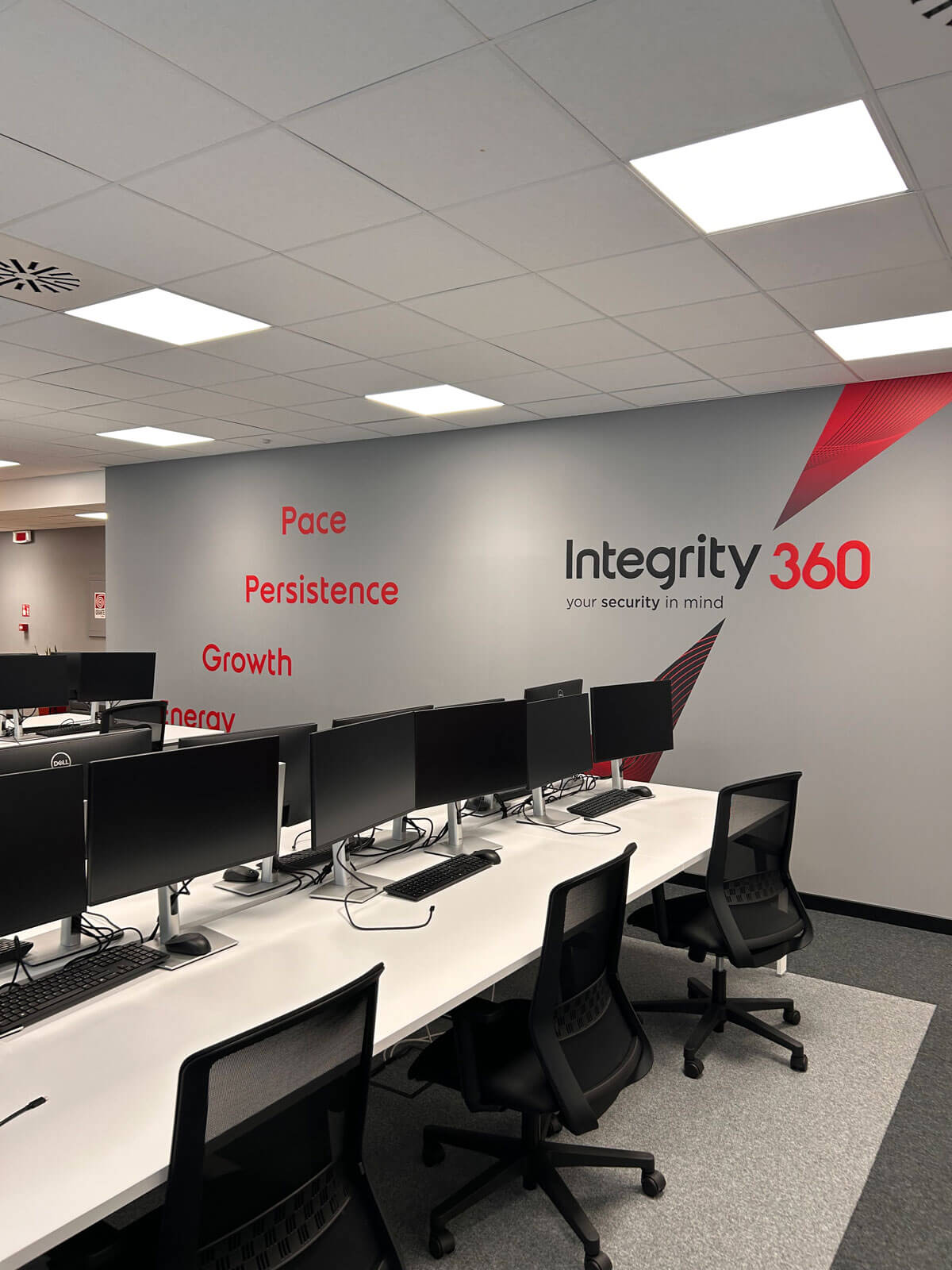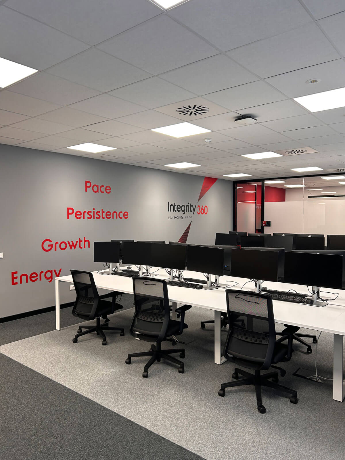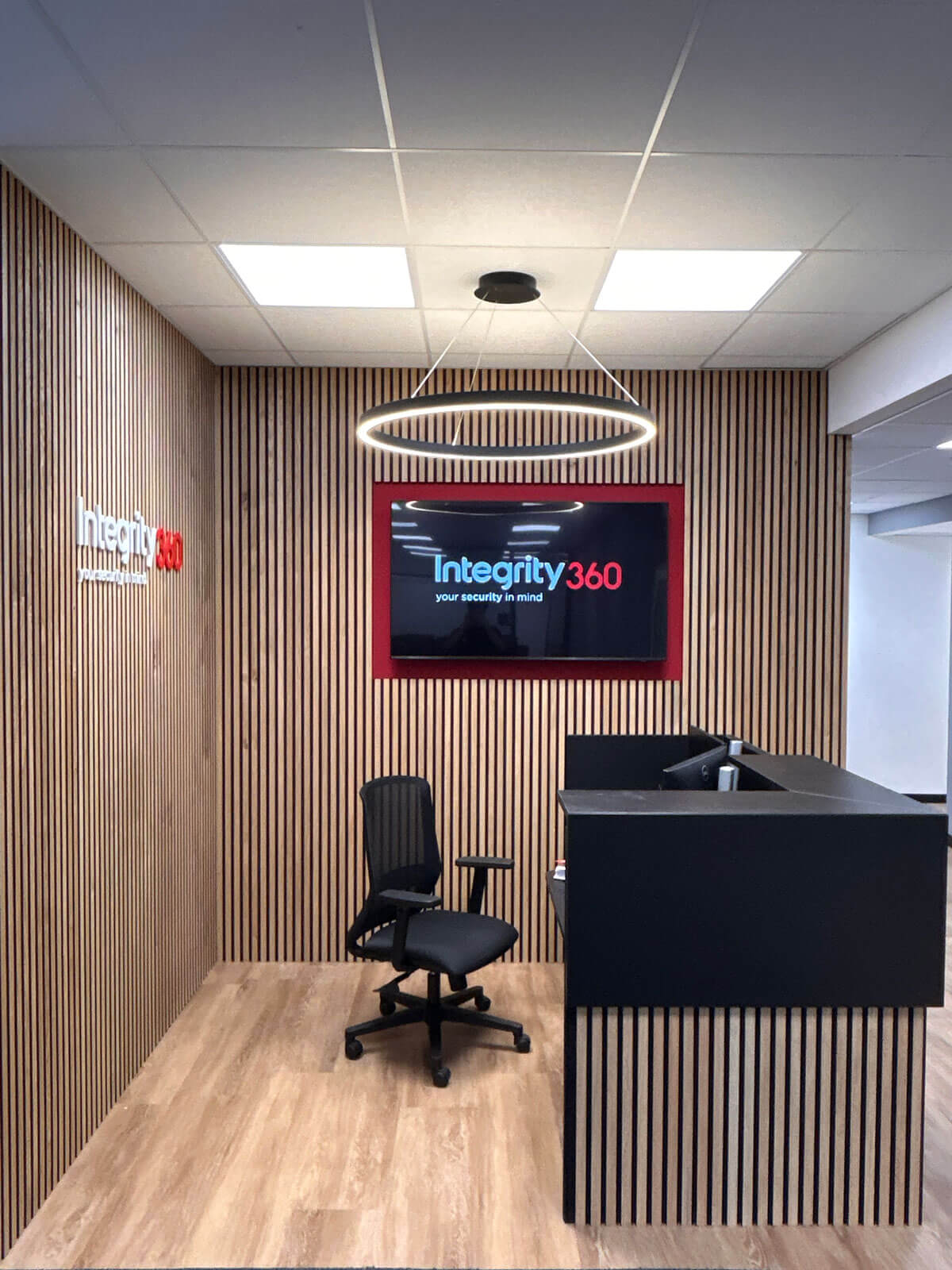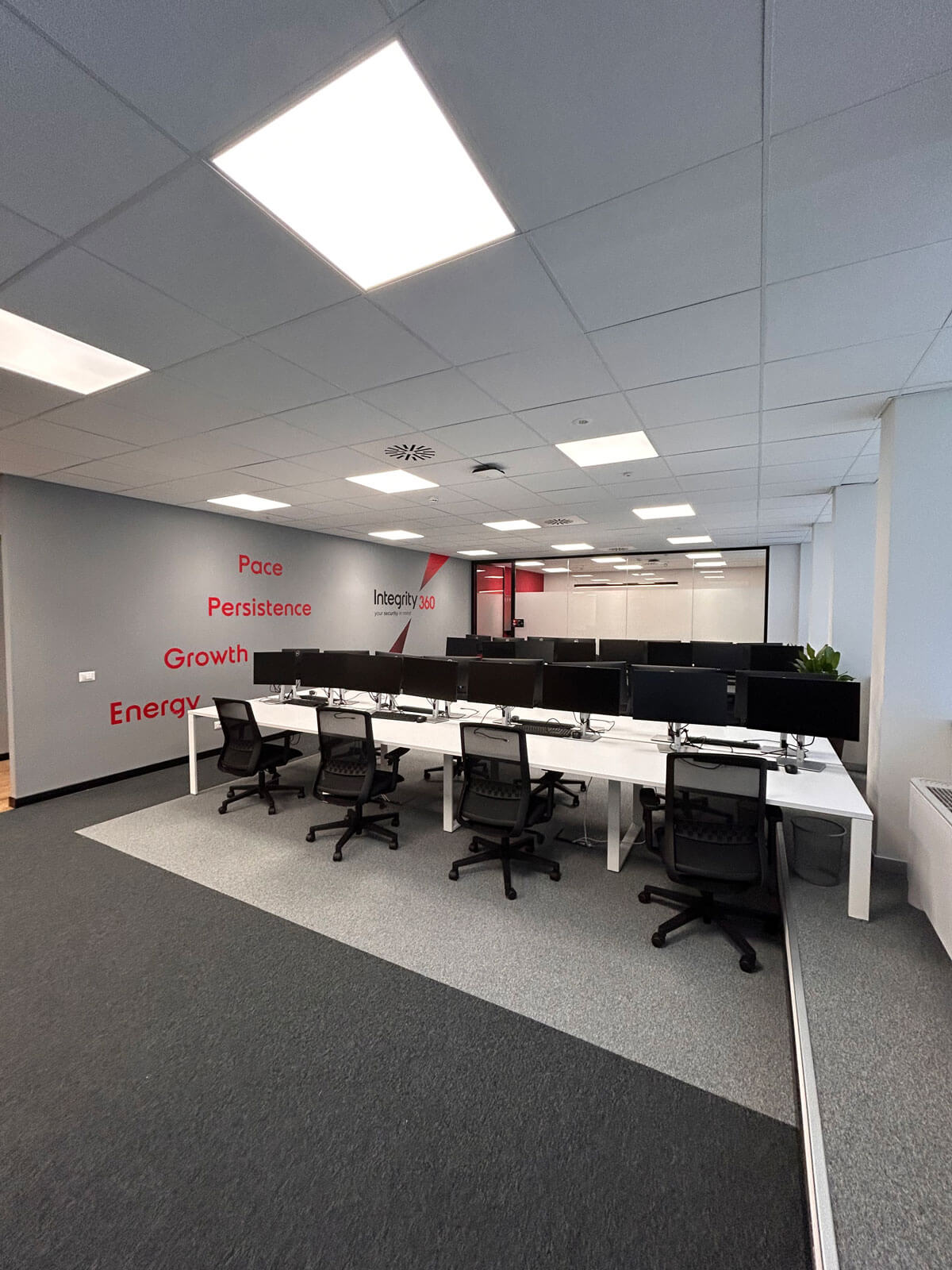Il progetto realizzato per Integrity 360 combina funzionalità operativa e forte identità visiva aziendale. Le postazioni operative modulari modello FUNNY di About Office, abbinate alle sedute TEKNA di Linea Fabbrica, garantiscono comfort e flessibilità per il lavoro quotidiano.