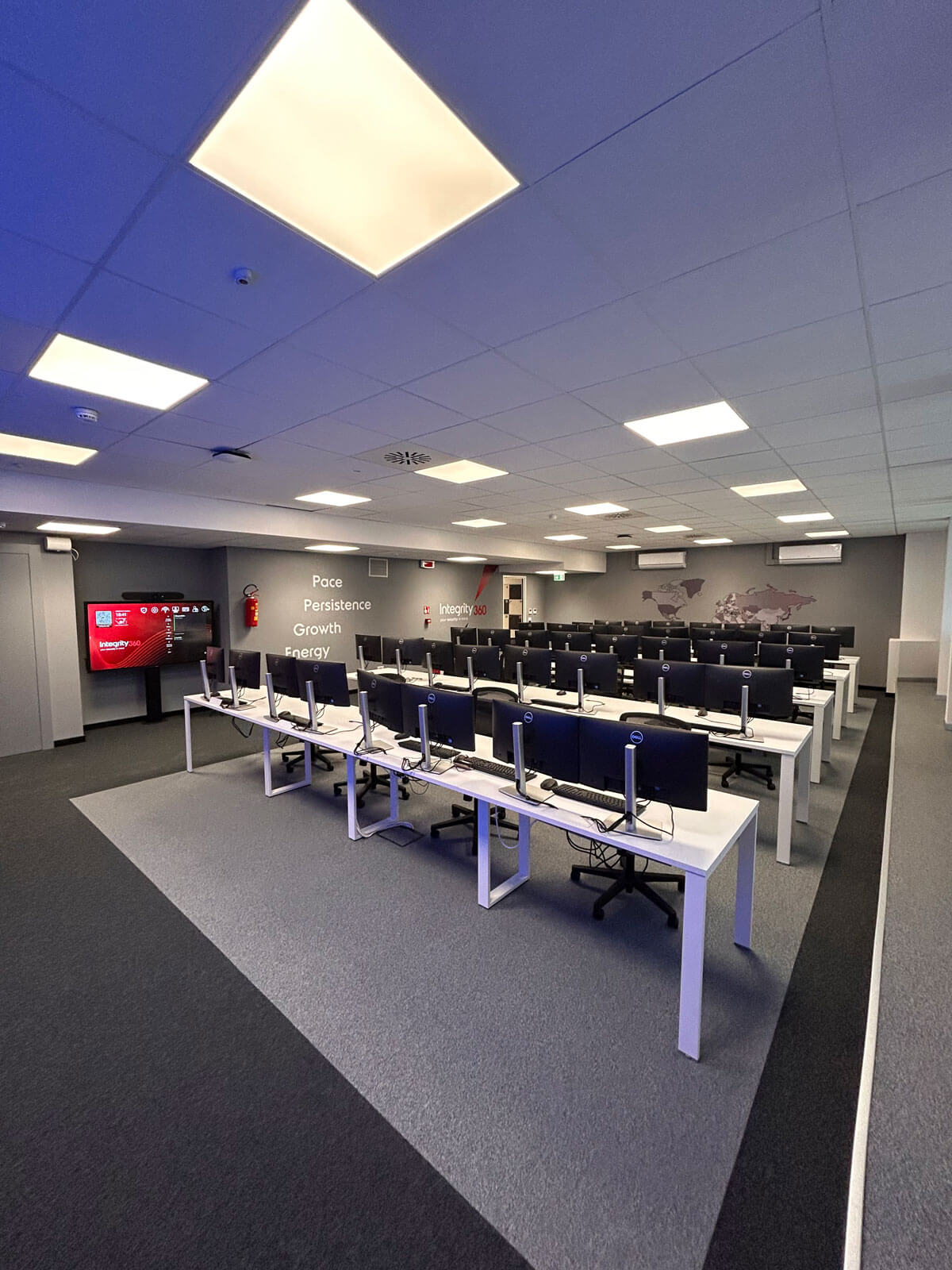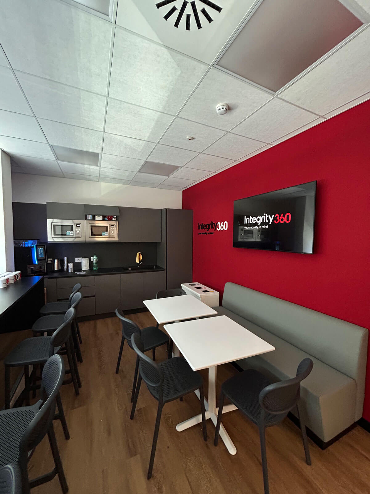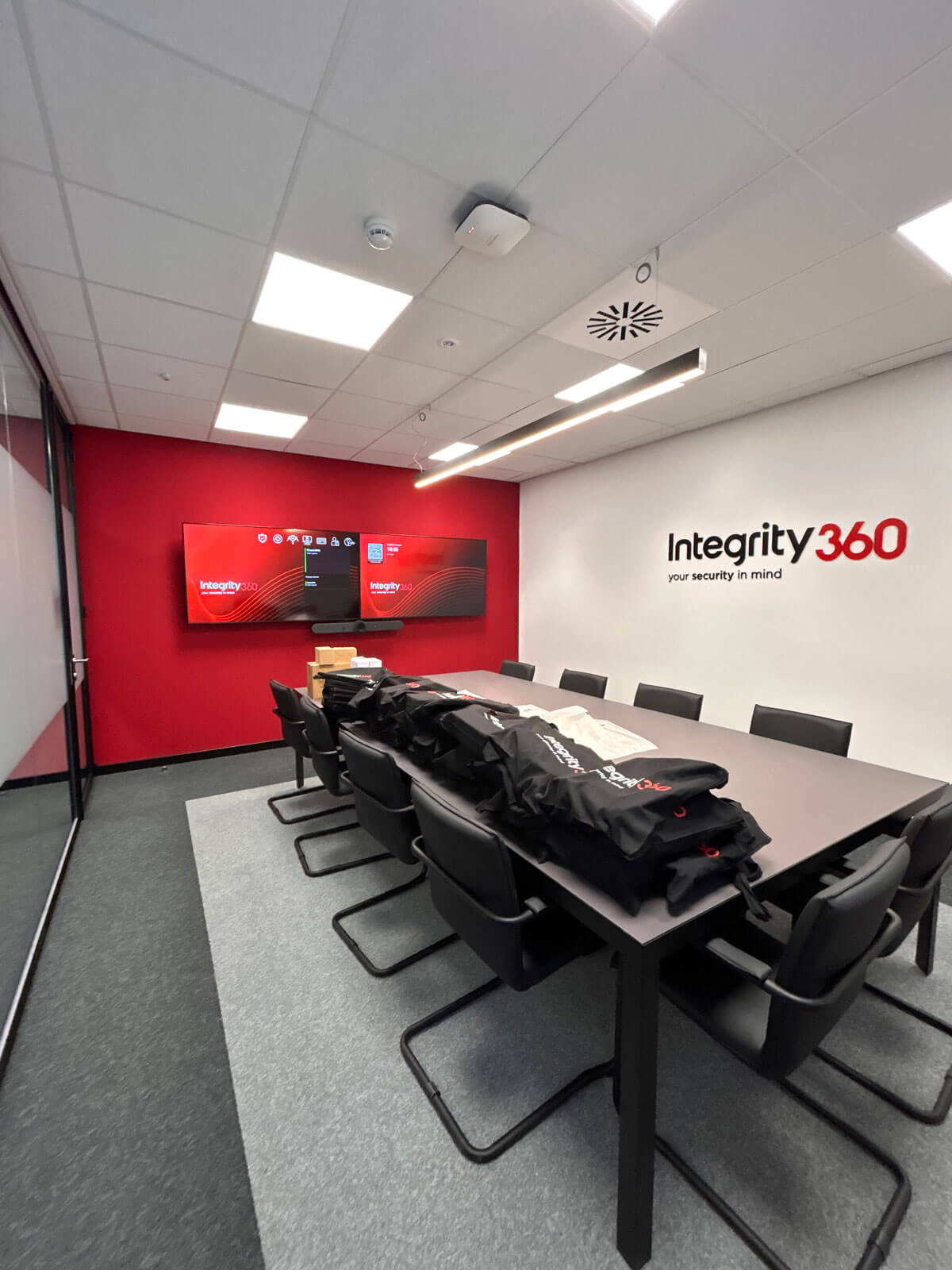 Il progetto realizzato per Integrity 360 combina funzionalità operativa e forte identità visiva aziendale. Le postazioni operative modulari modello FUNNY di About Office, abbinate alle sedute TEKNA di Linea Fabbrica, garantiscono comfort e flessibilità per il lavoro quotidiano.