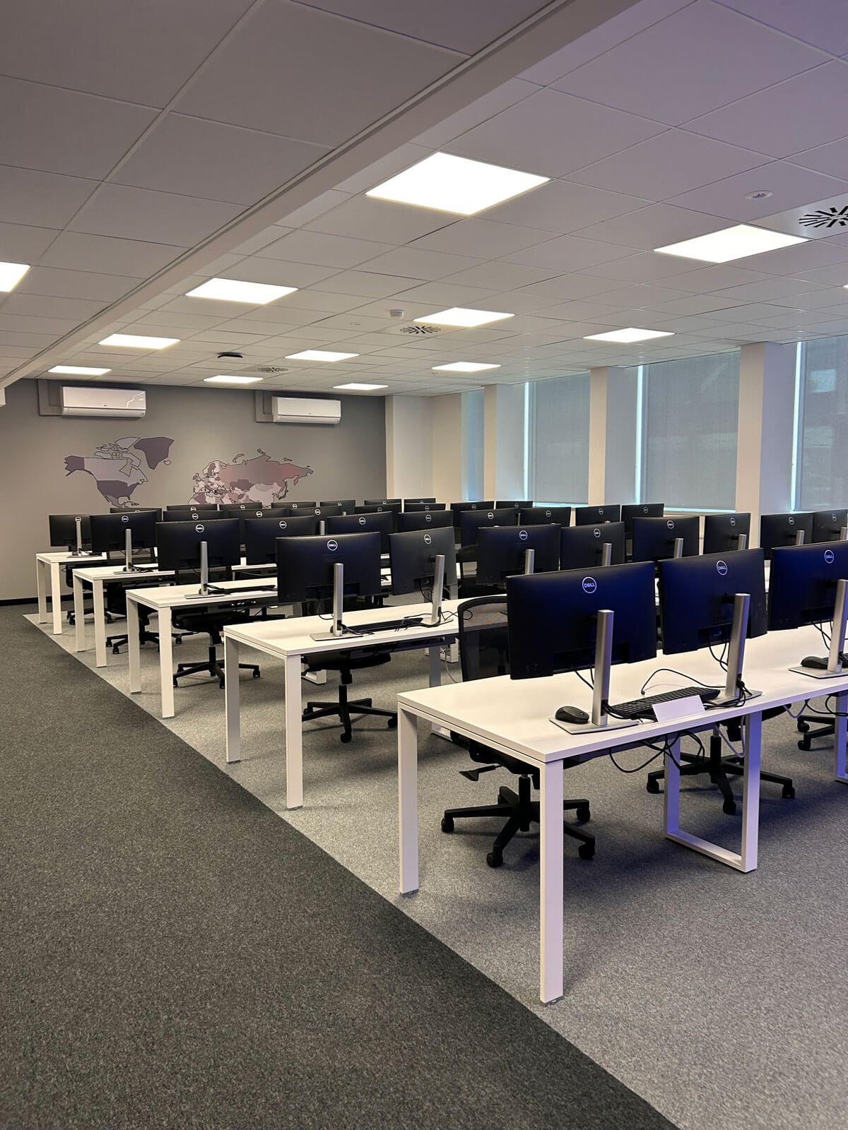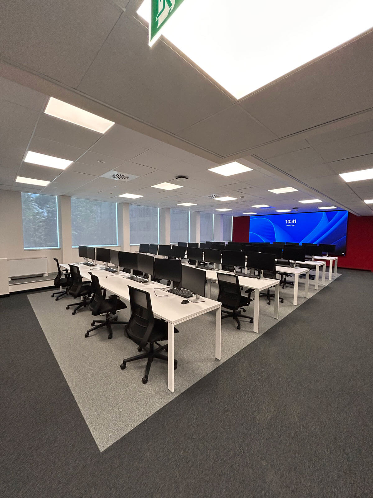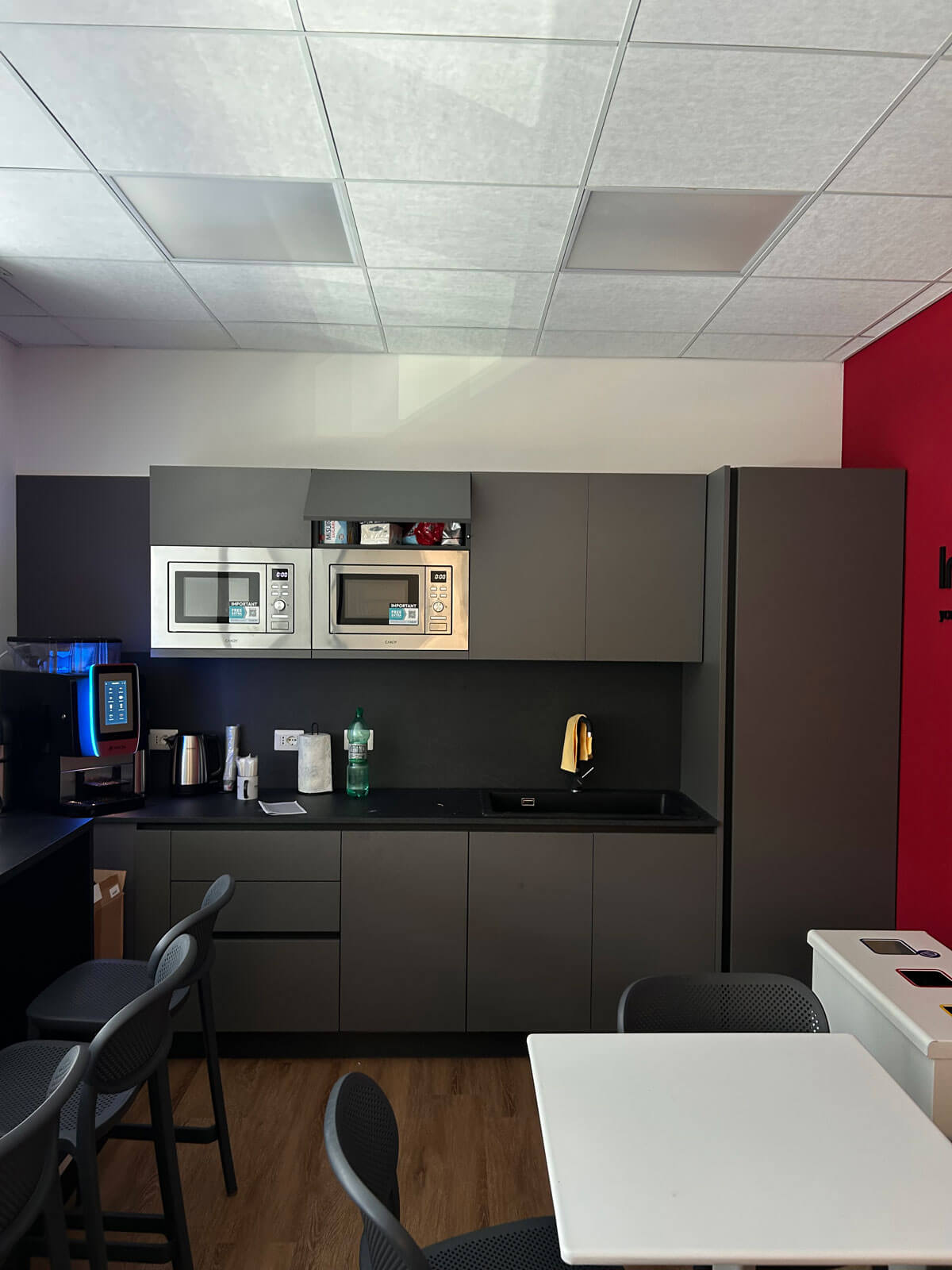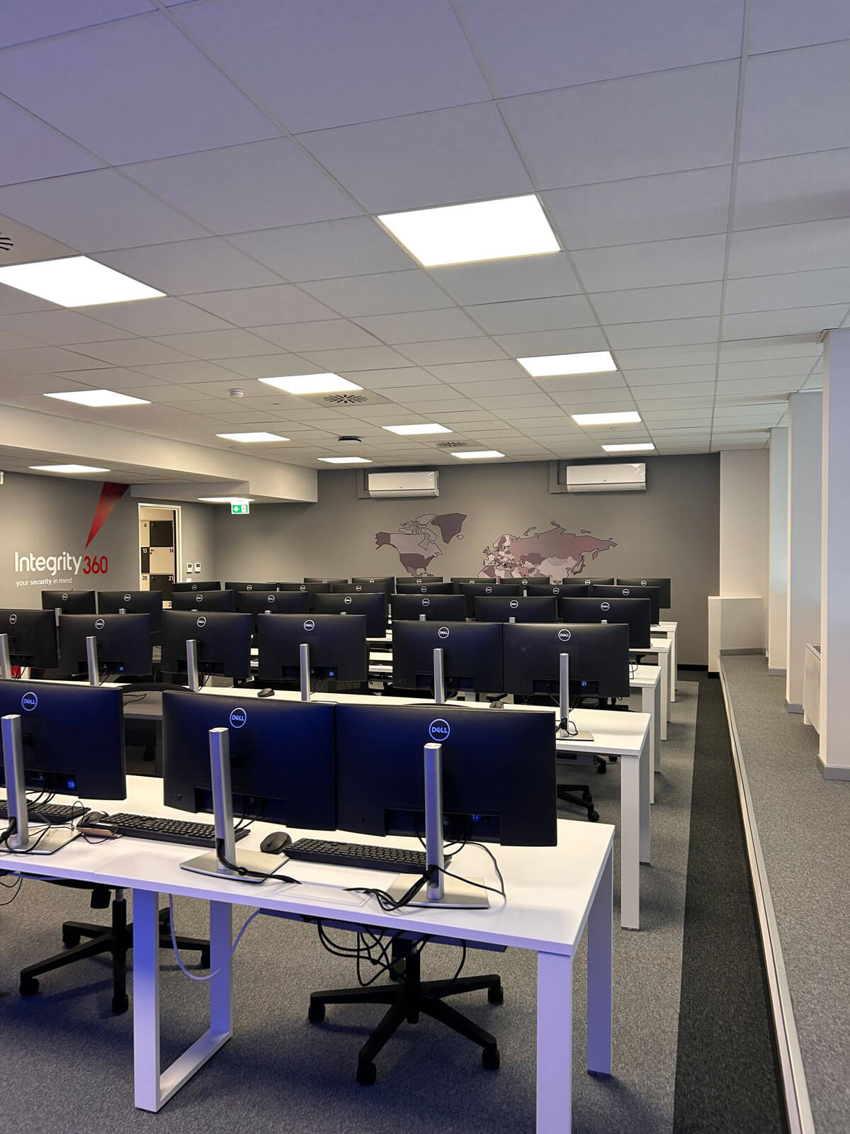 Il progetto realizzato per Integrity 360 combina funzionalità operativa e forte identità visiva aziendale. Le postazioni operative modulari modello FUNNY di About Office, abbinate alle sedute TEKNA di Linea Fabbrica, garantiscono comfort e flessibilità per il lavoro quotidiano.