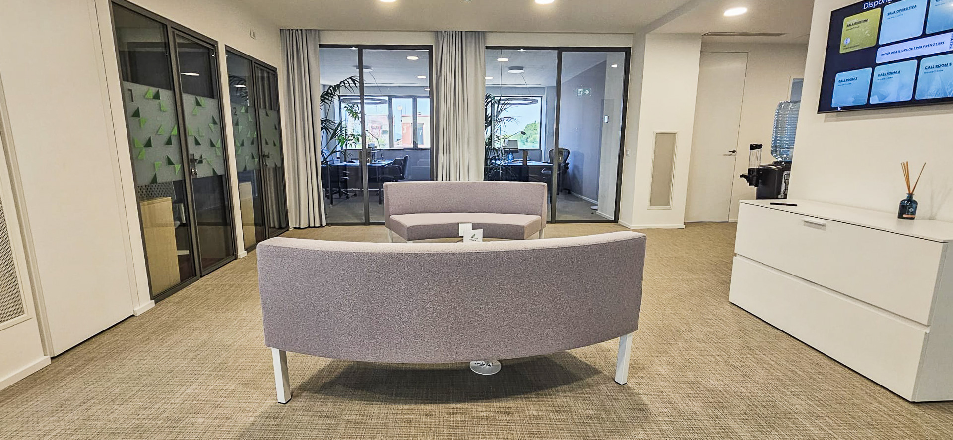 La richiesta principale riguardava la realizzazione di soluzioni su misura, in grado di rispecchiare l’identità aziendale e adattarsi perfettamente agli spazi disponibili.