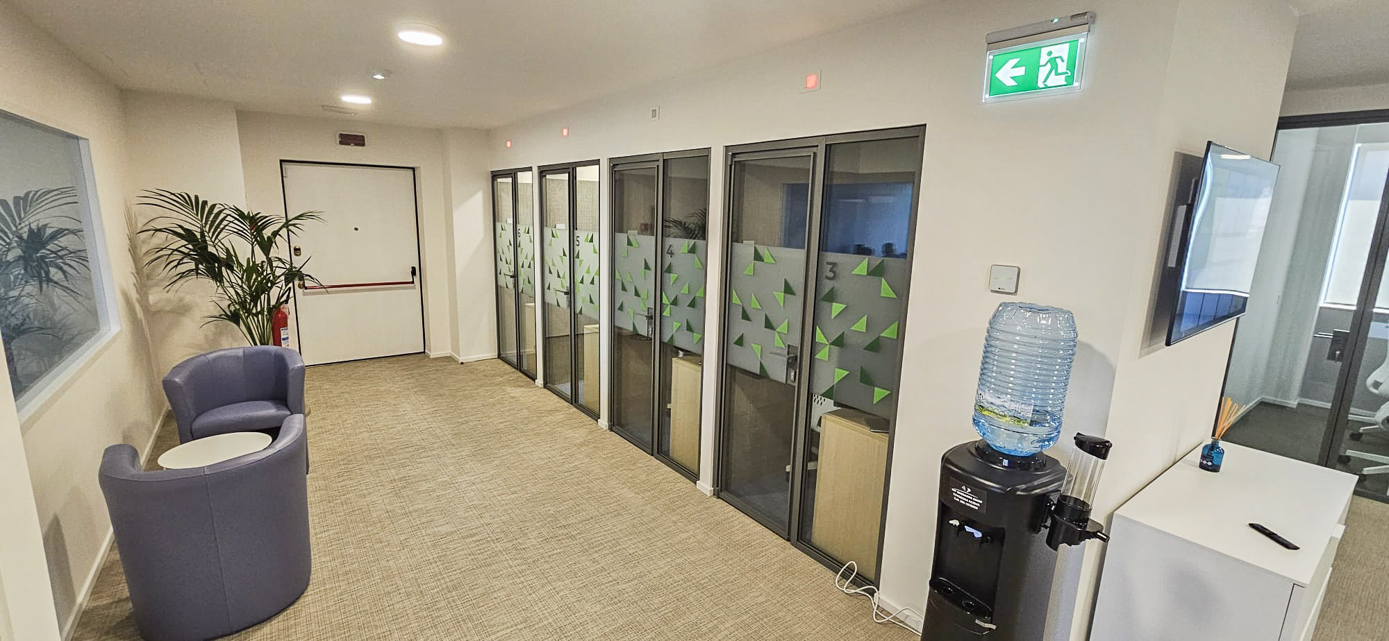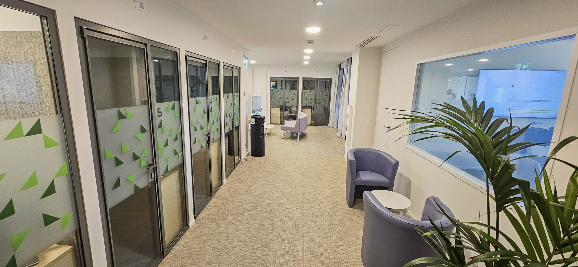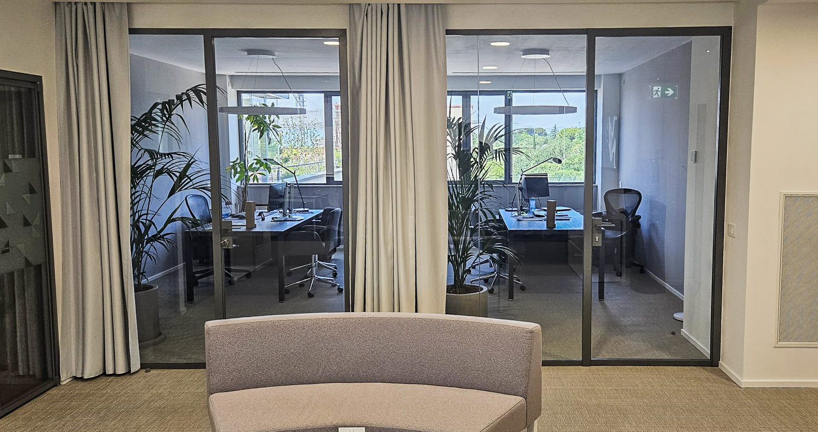 L’intervento ha previsto l’installazione di pareti vetrate modello SPETTRA di Line Office, realizzate con profili in finitura RAL personalizzata, per garantire coerenza estetica con l’immagine del brand e una suddivisione degli ambienti leggera e luminosa.