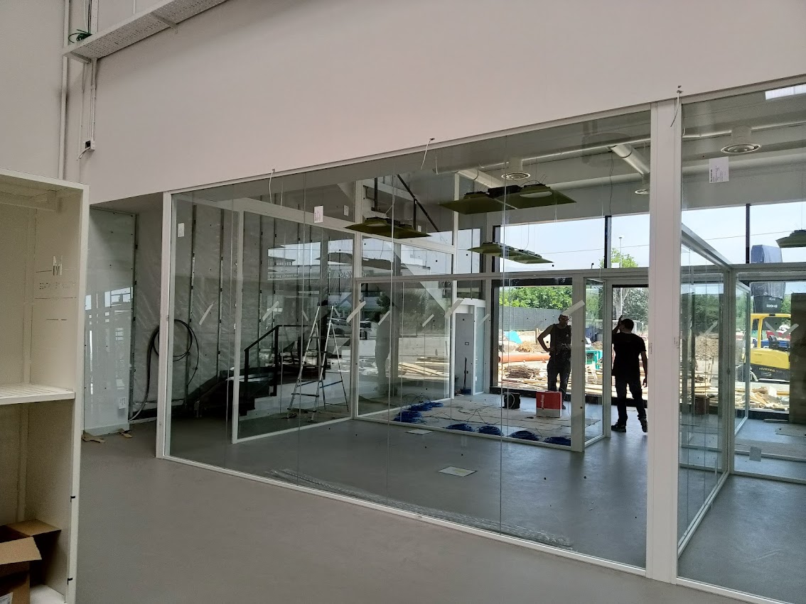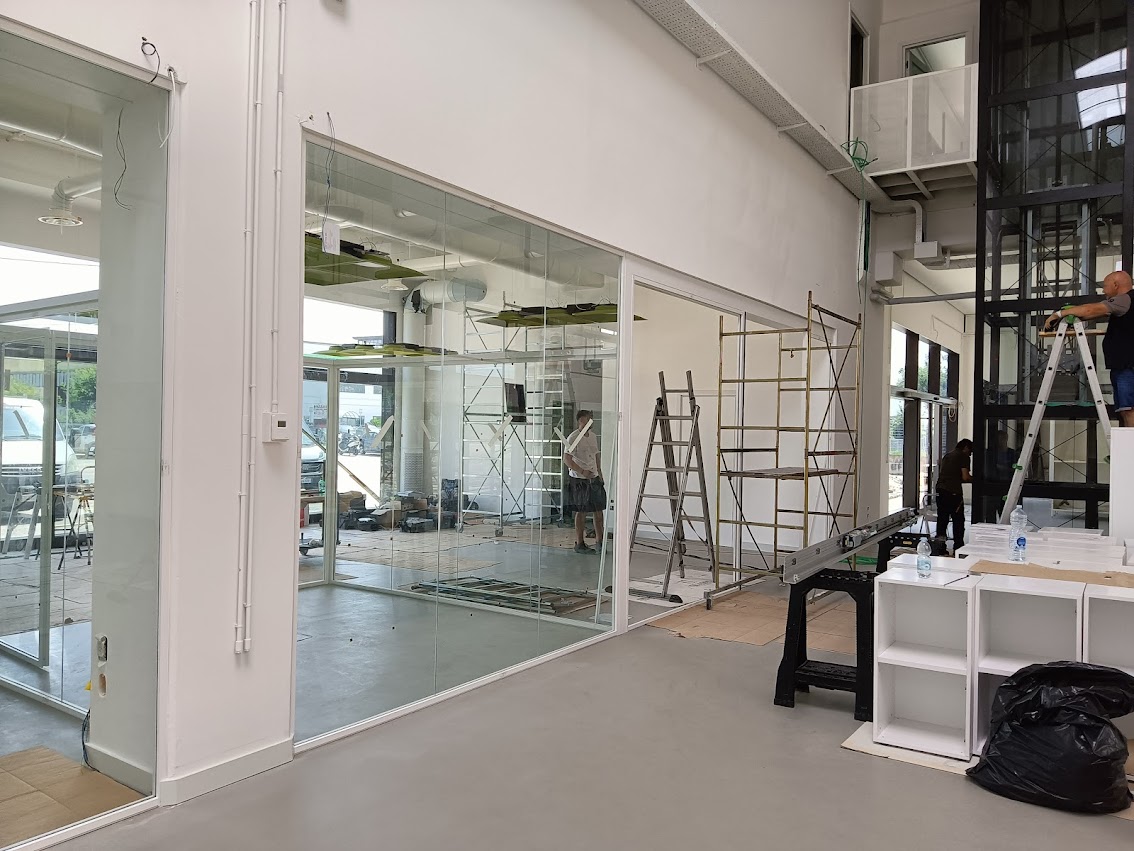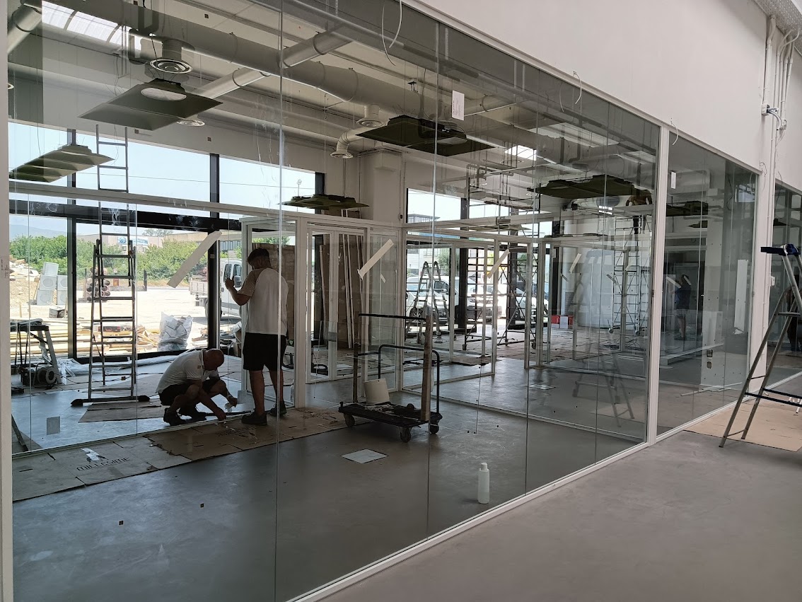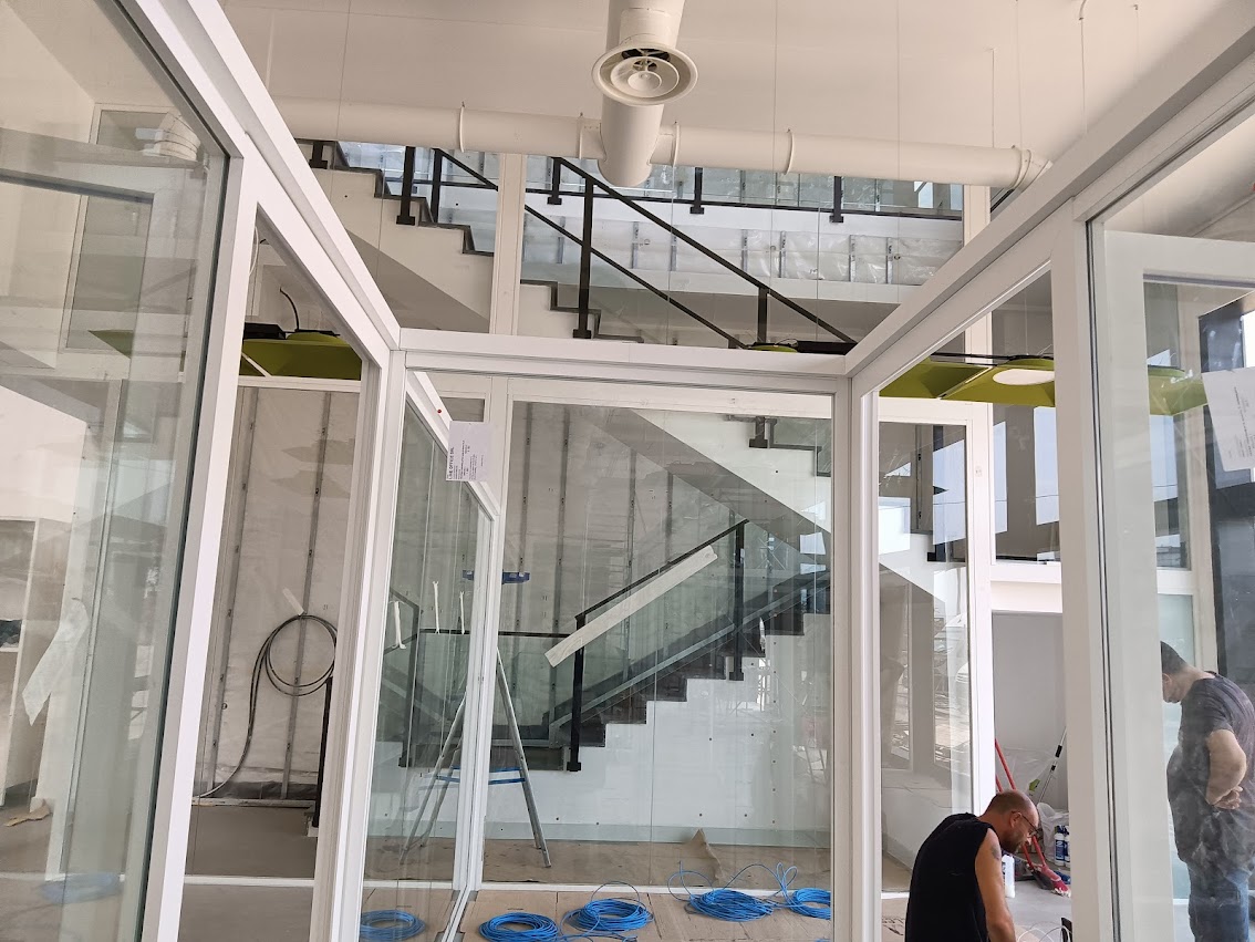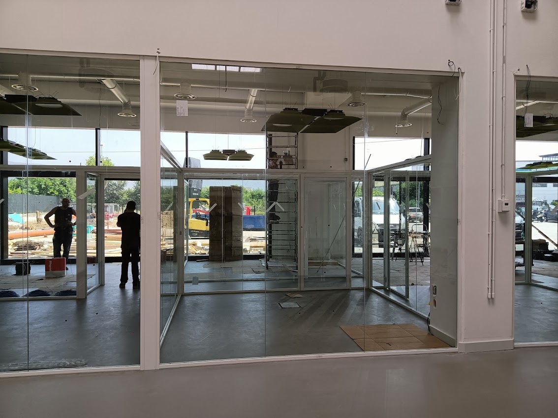 La sfida principale era suddividere gli ambienti in modo efficace anche in assenza di finestre dirette, garantendo aerazione, luminosità e conformità alle disposizioni sulla sicurezza nei luoghi di lavoro.