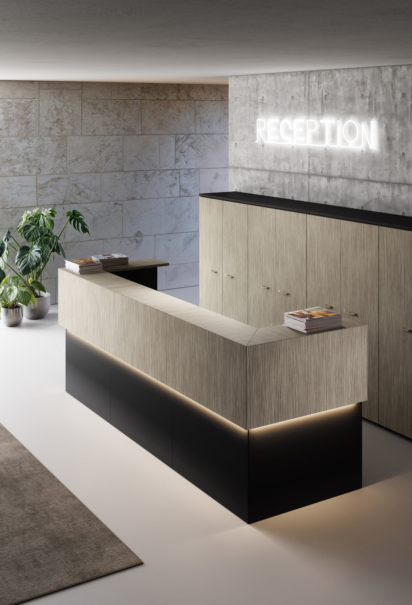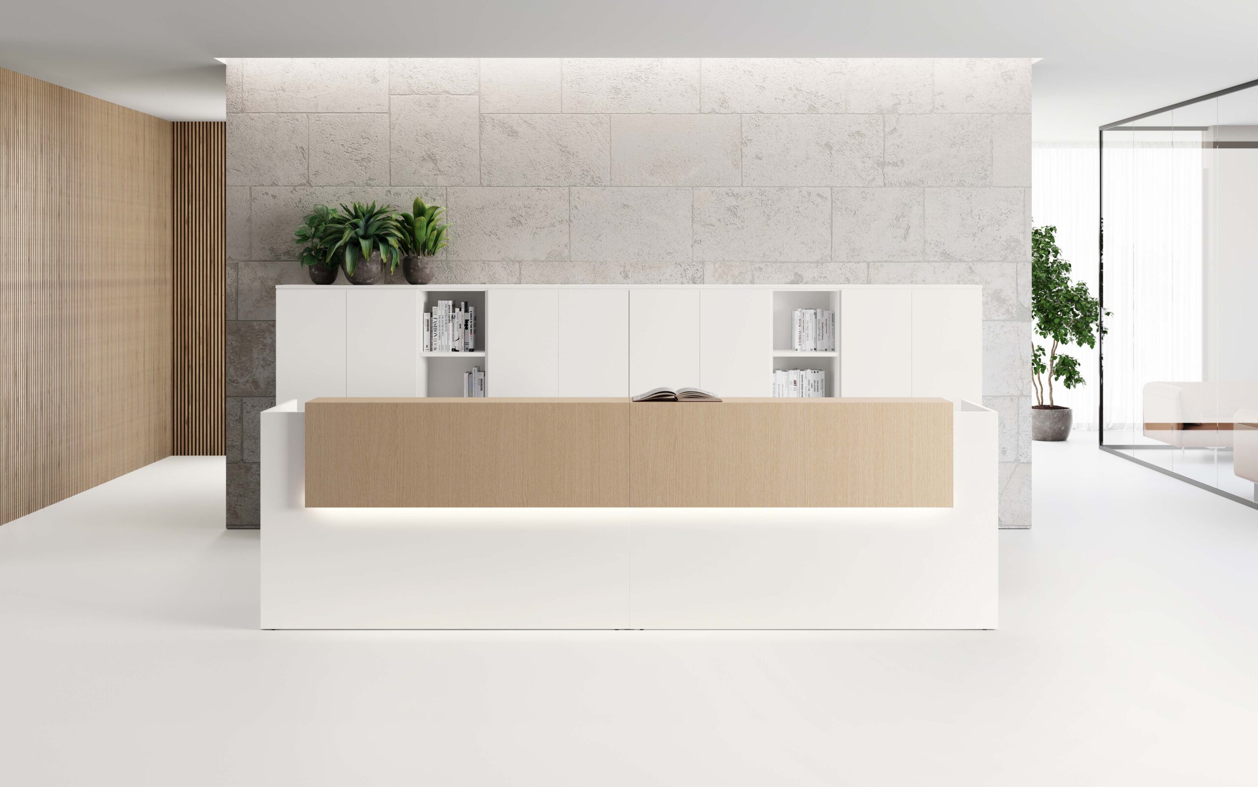 La reception linea Point è un’opzione ideale per uffici e spazi open space, grazie al suo design che si ispira a criteri di rigore formale e alla sua capacità di adattarsi a ogni contesto attraverso l’aggregazione di diversi moduli.
