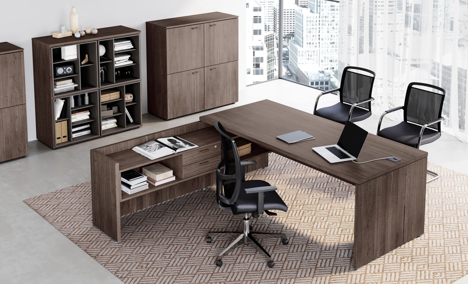 Gli arredi per ufficio direzionale della linea Delta godono linee pure e materiali di qualità. Solidi, robusti, eleganti e funzionali, ogni mobile o complementi d’arredo di questa linea permette di coniugare funzionalità e design per arredare gli spazi direzionali anche dei clienti più esigenti. Oltre al lato estetico e alle caratteristiche funzionali, è stata data attenzione anche al prezzo che risulta essere competitivo.