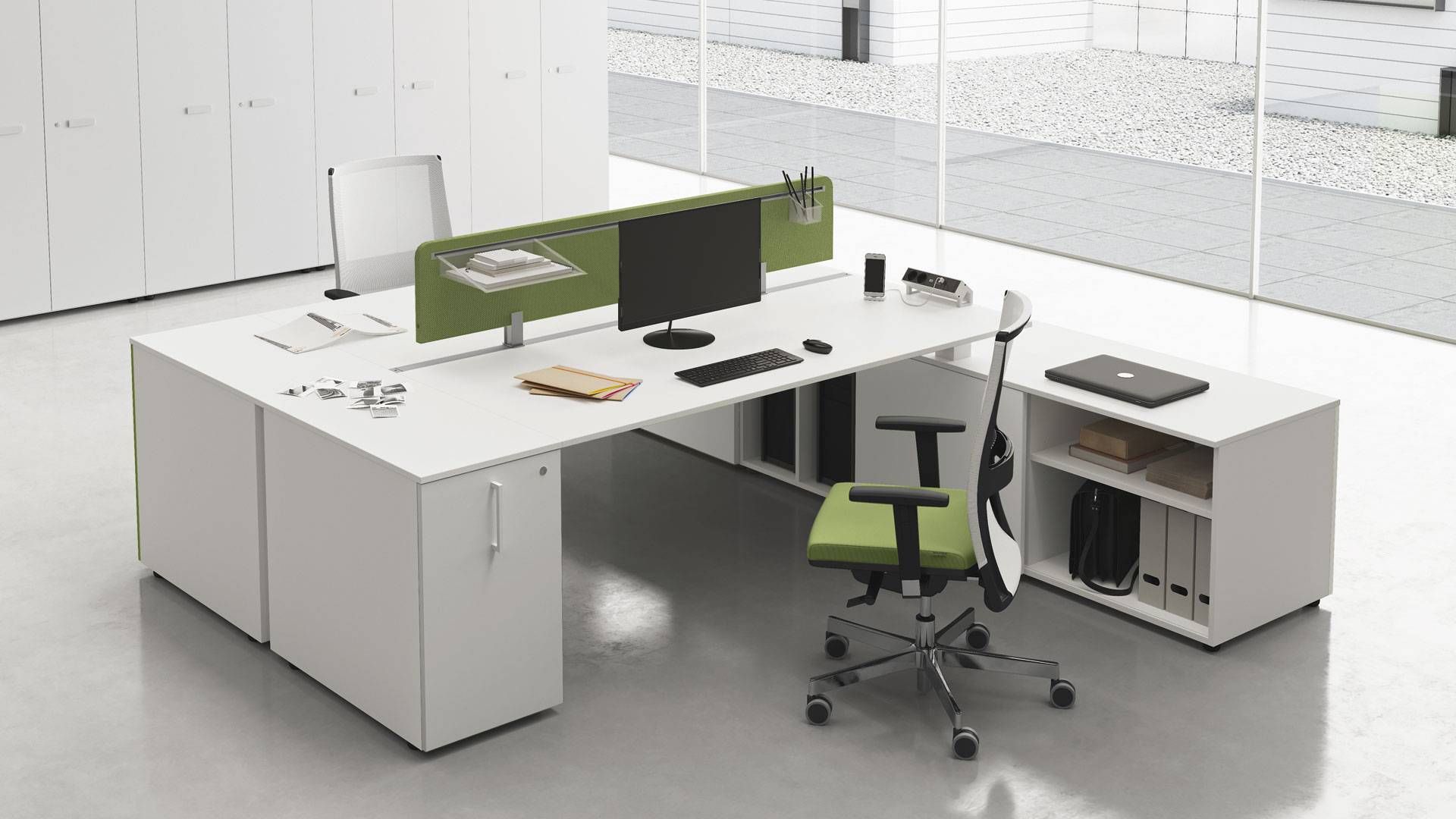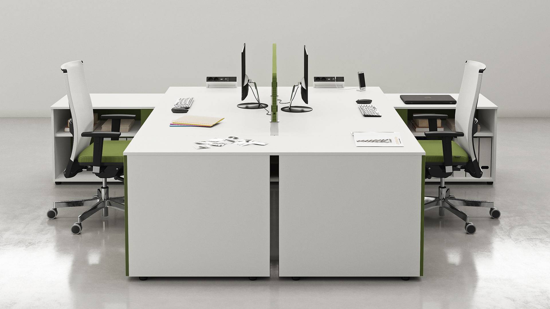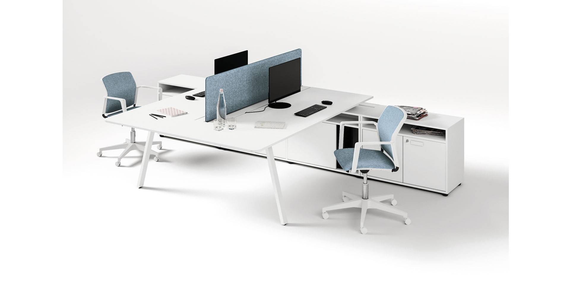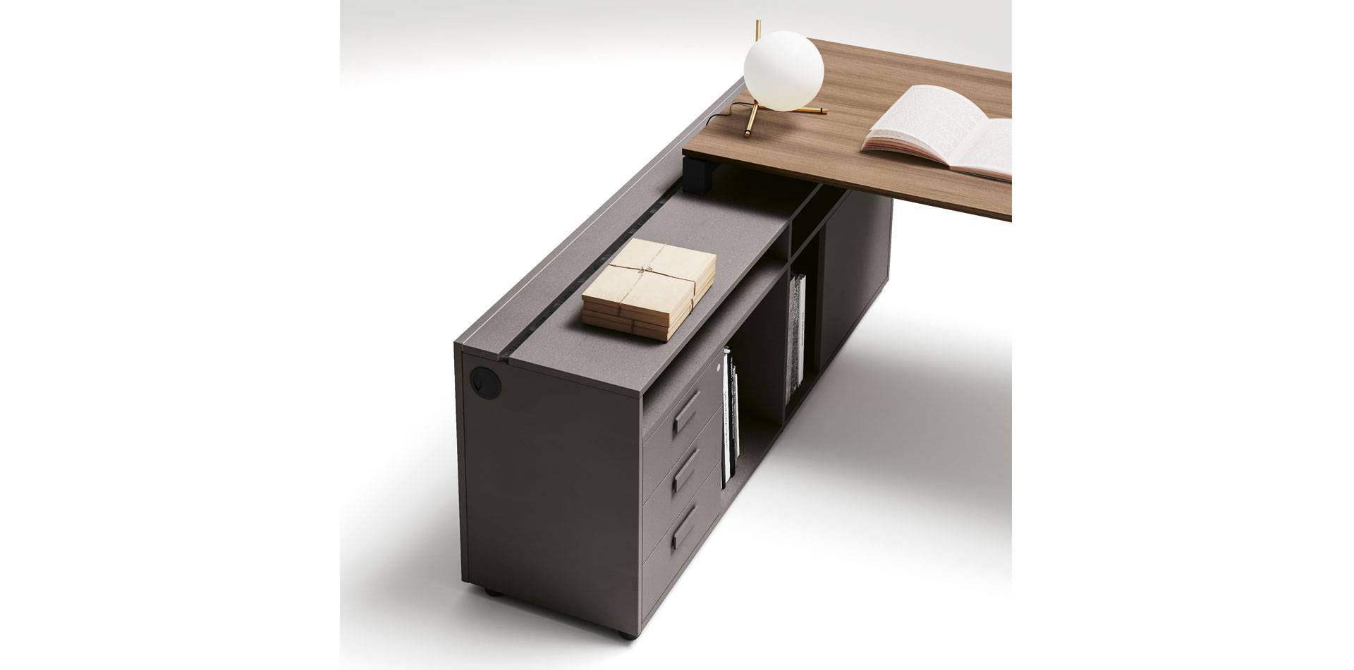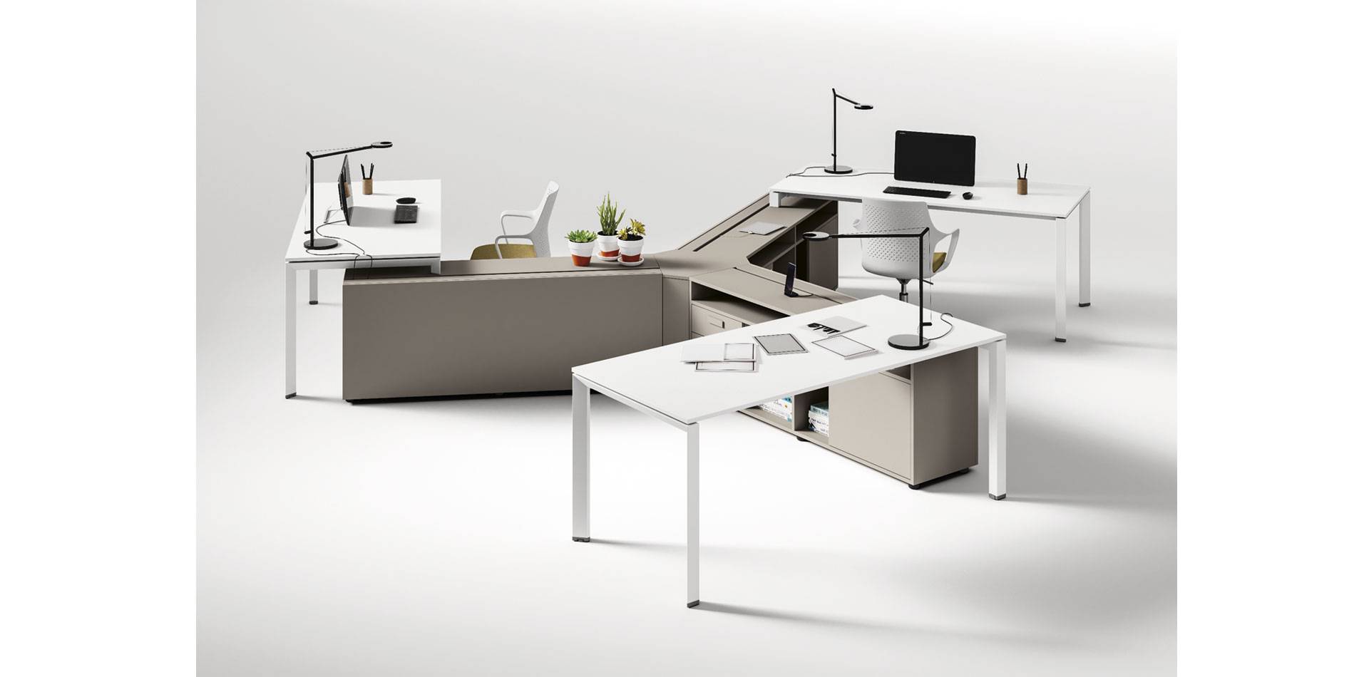 La qualità, gli accessori tecnologici, i materiali, le finiture e i colori danno vita ad un arredamento completo per gli uffici operativi. La linea 5° Element OP offre una ampia gamma di soluzioni con elementi coordinati per arredare per intero tutta la zona lavorativa. Dai piani di lavoro alle cassettiere su ruote, ogni elemento si integra gradevolmente con gli altri, senza dimenticare l’ottimo rapporto tra qualità e prezzo