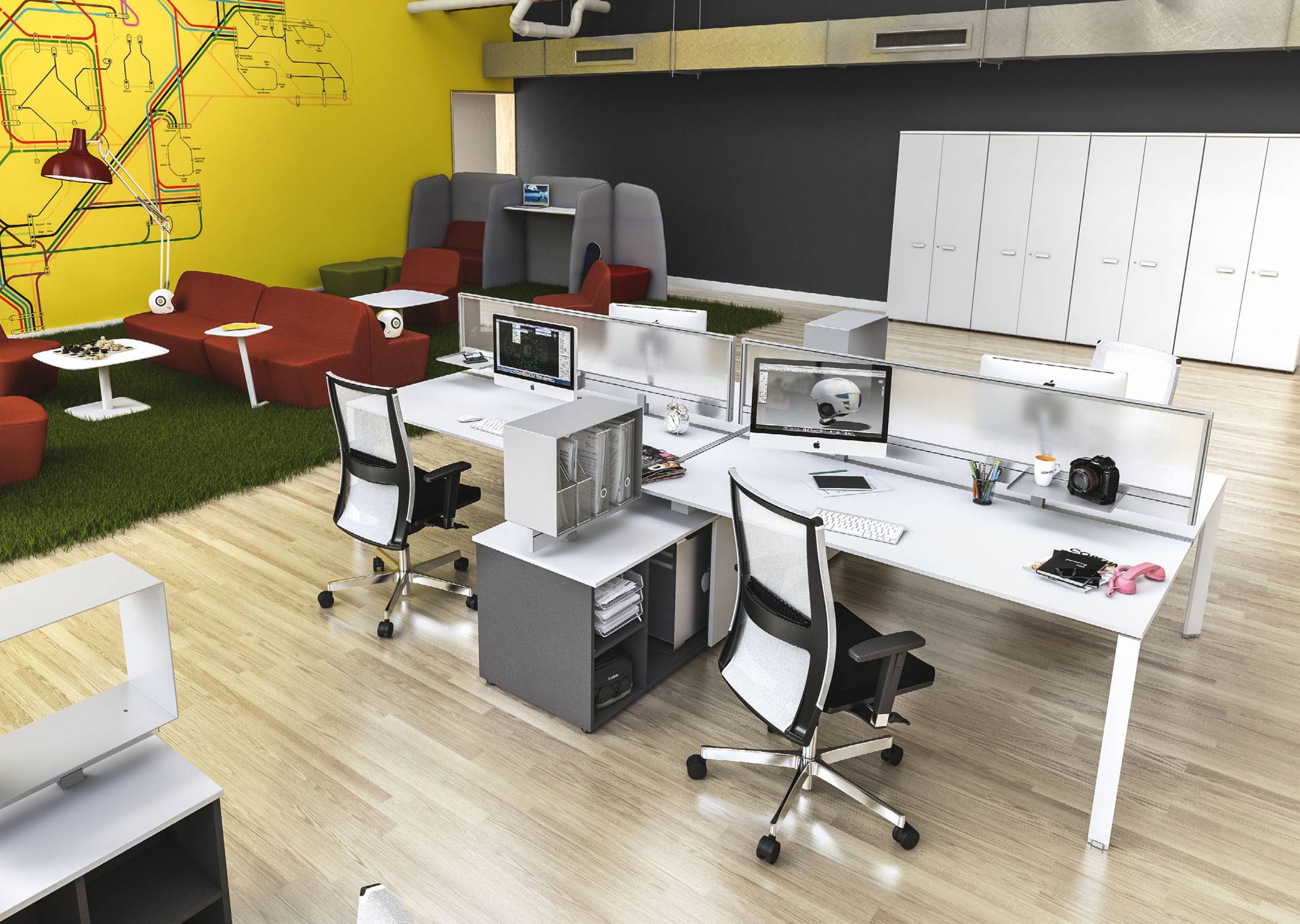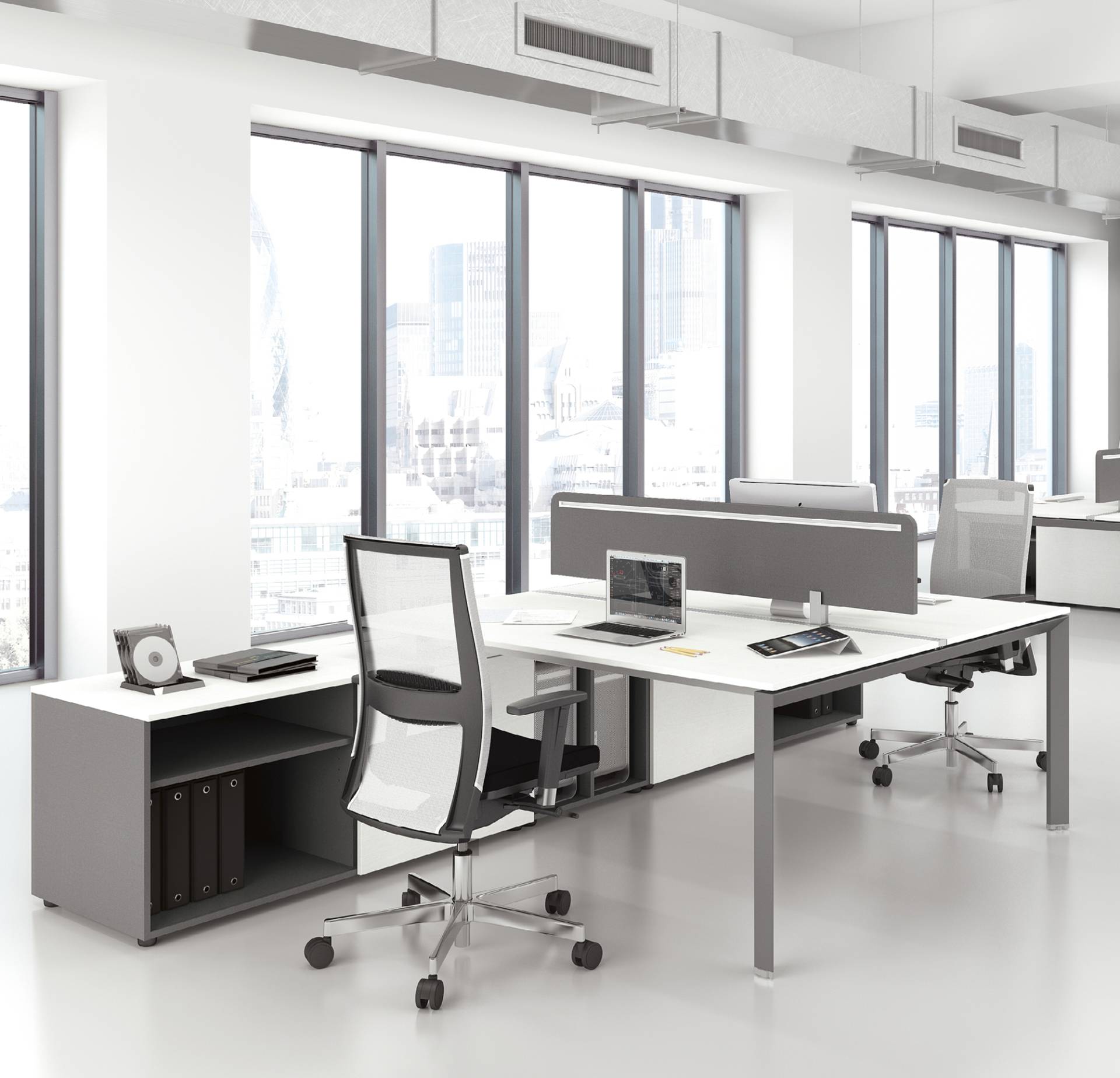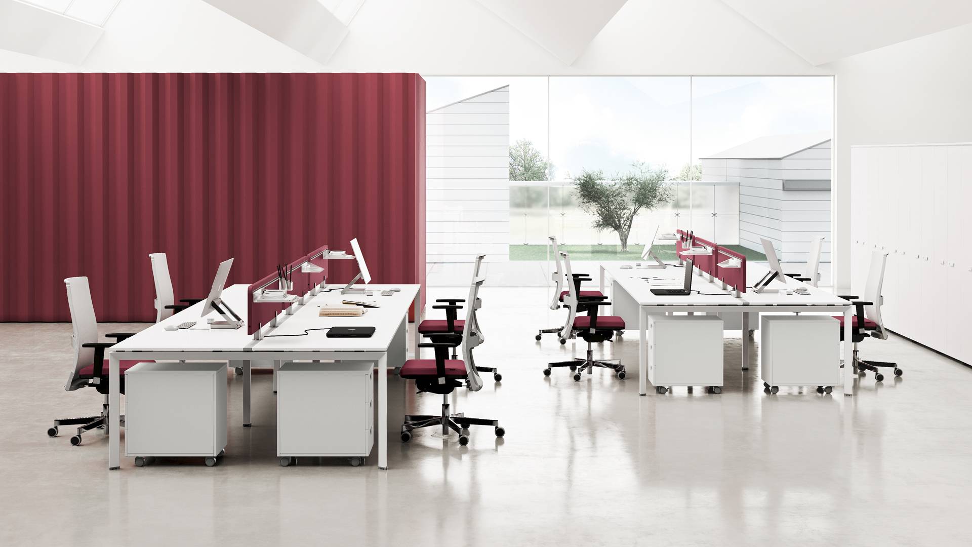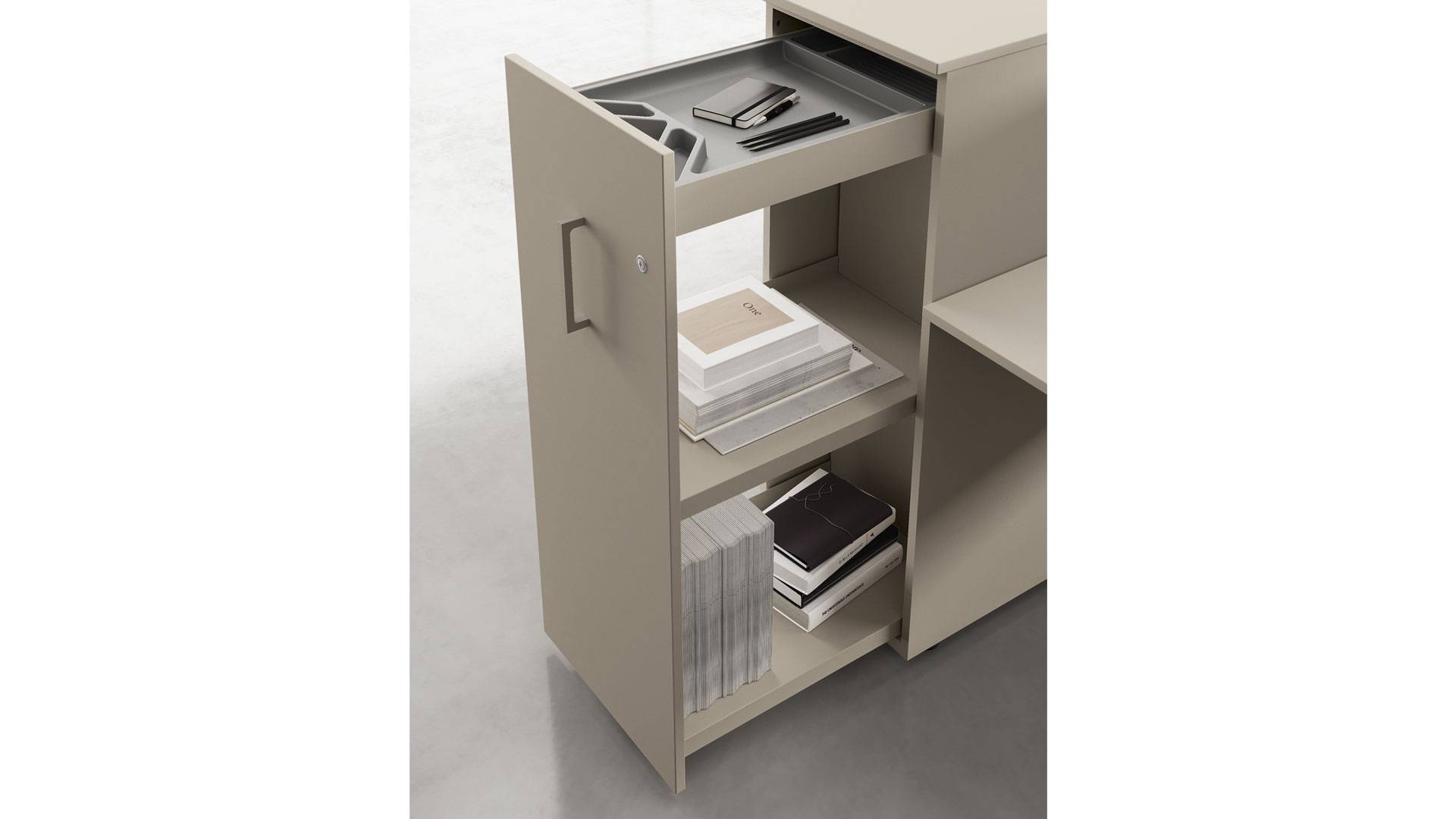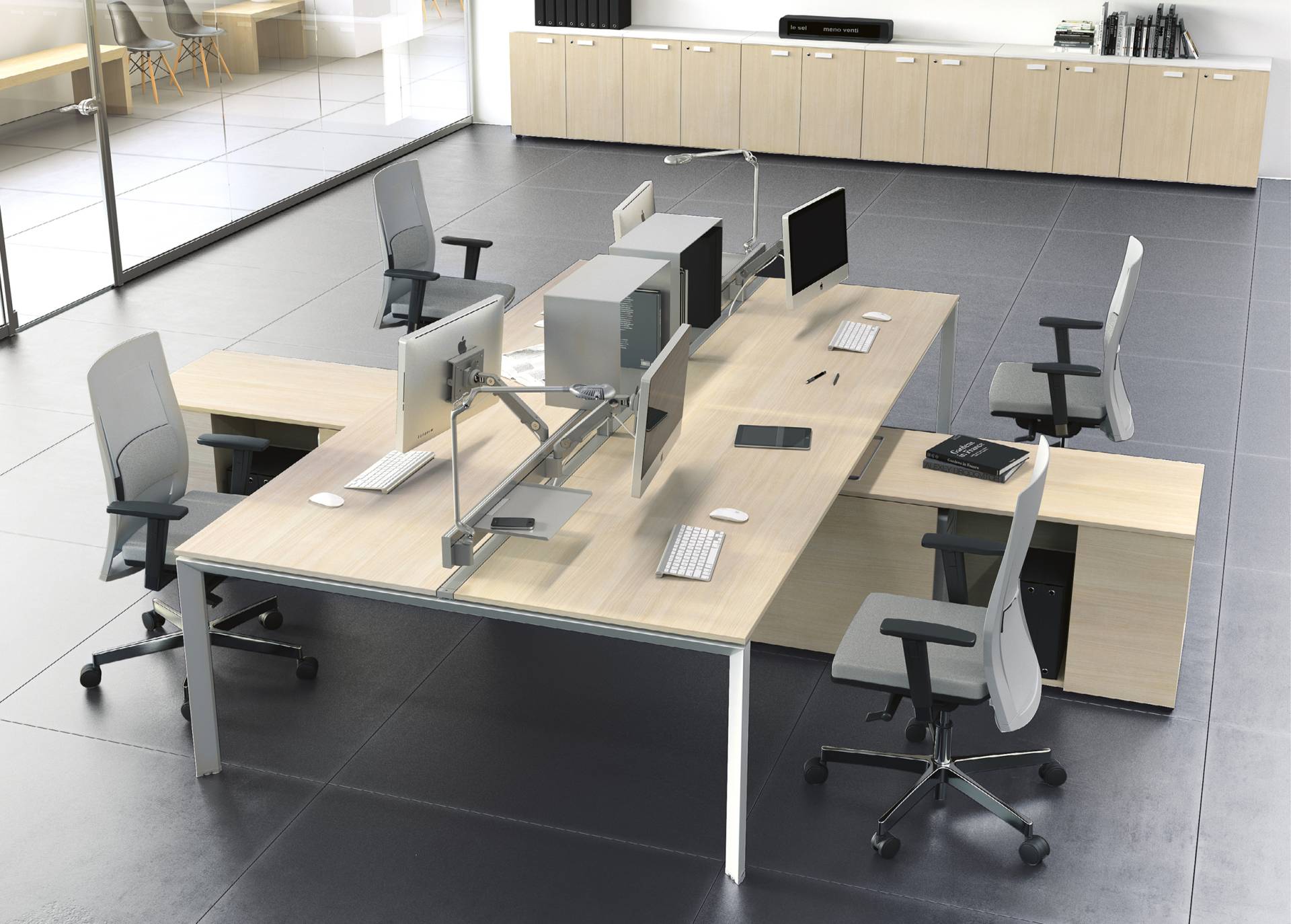 La qualità, gli accessori tecnologici, i materiali, le finiture e i colori danno vita ad un arredamento completo per gli uffici operativi. La linea 5° Element OP offre una ampia gamma di soluzioni con elementi coordinati per arredare per intero tutta la zona lavorativa. Dai piani di lavoro alle cassettiere su ruote, ogni elemento si integra gradevolmente con gli altri, senza dimenticare l’ottimo rapporto tra qualità e prezzo