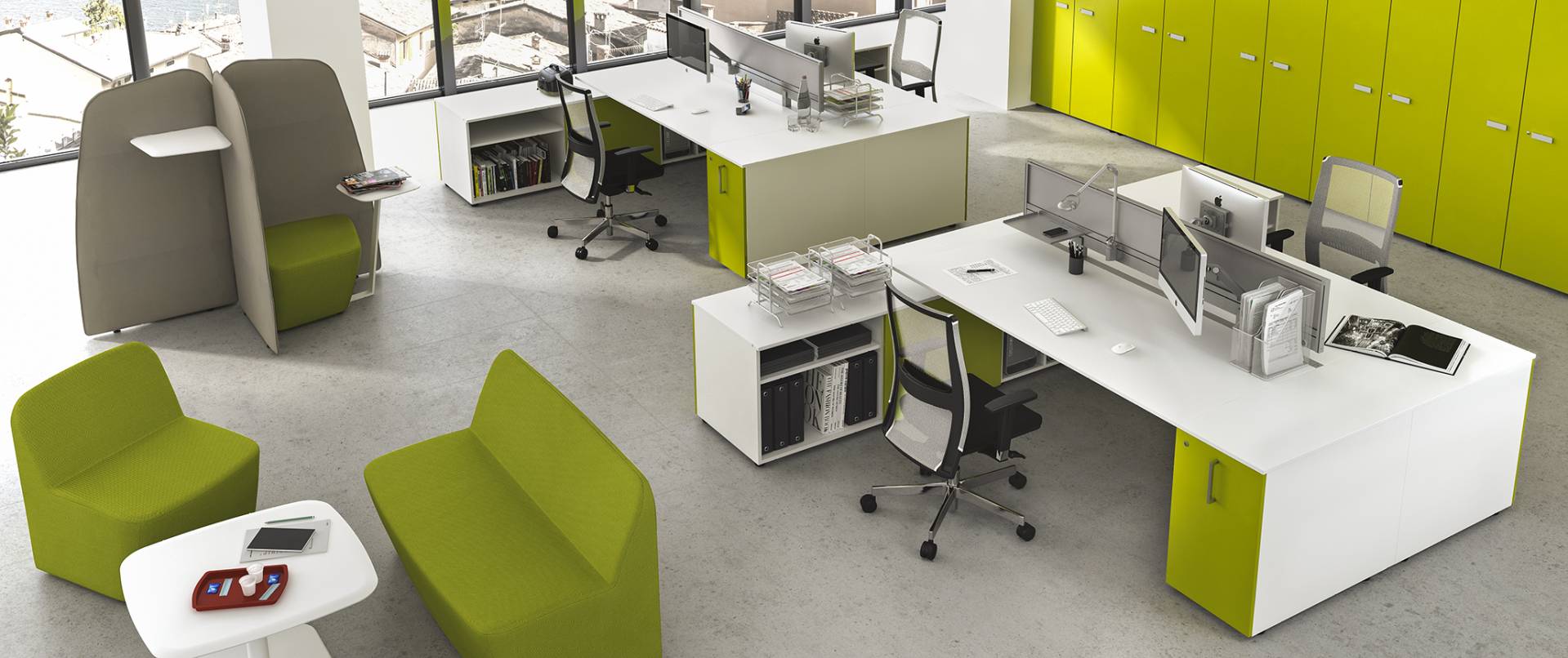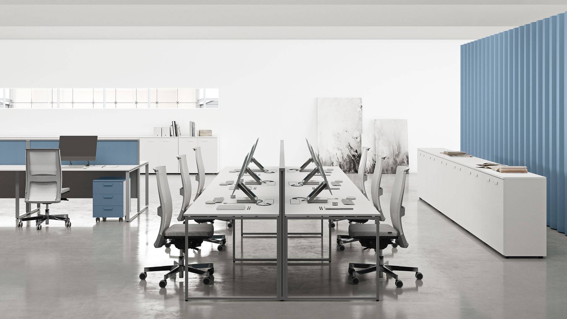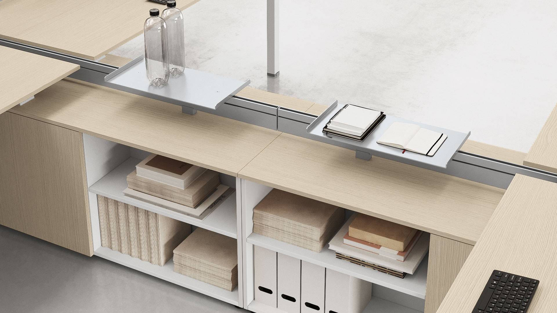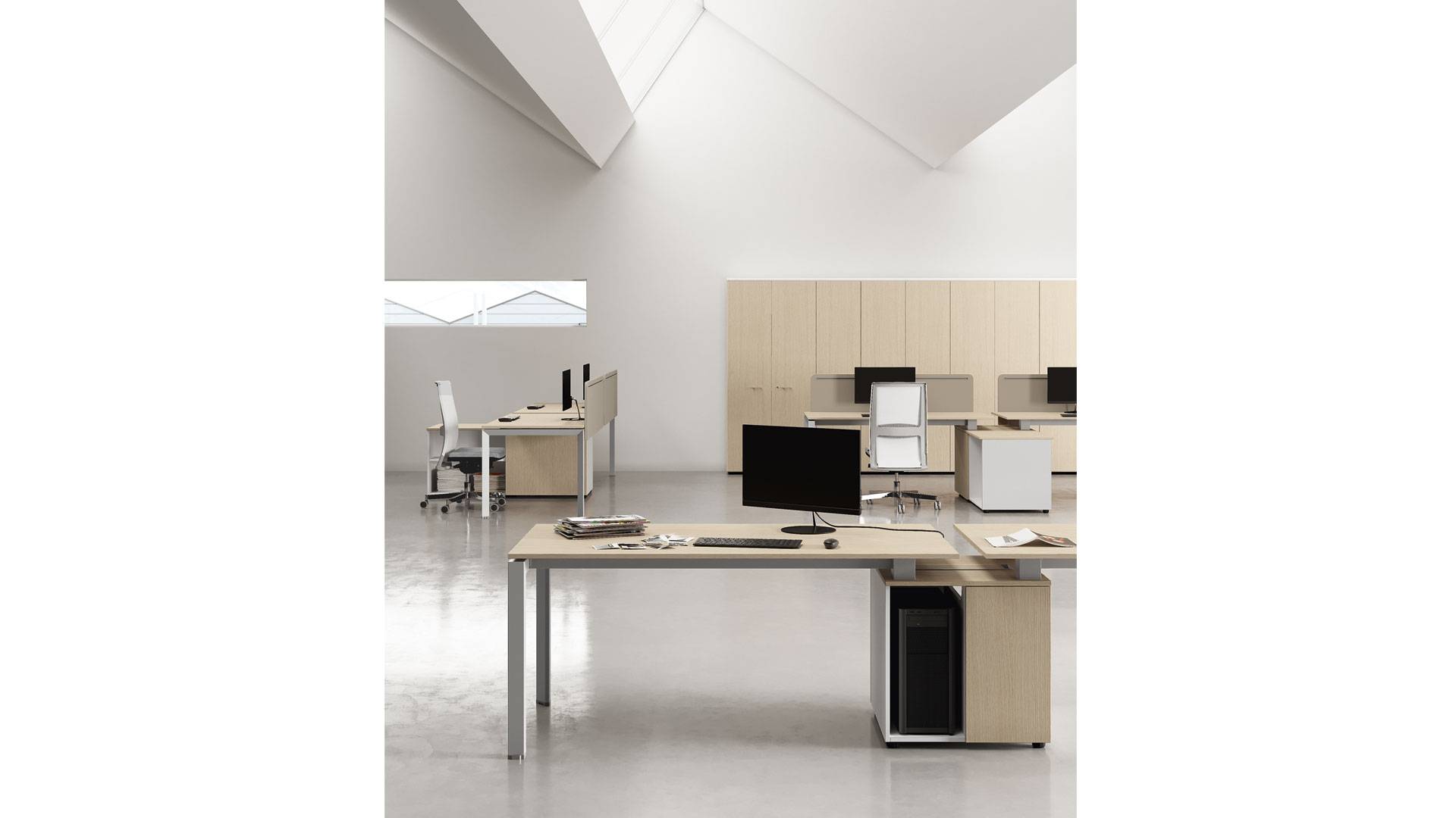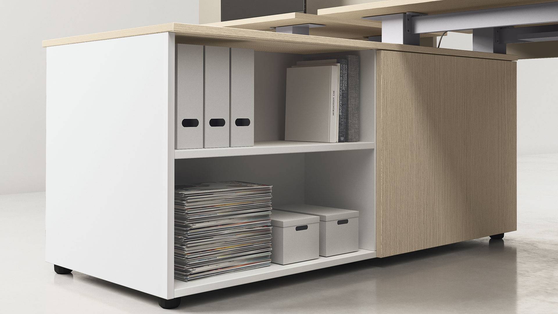 La qualità, gli accessori tecnologici, i materiali, le finiture e i colori danno vita ad un arredamento completo per gli uffici operativi. La linea 5° Element OP offre una ampia gamma di soluzioni con elementi coordinati per arredare per intero tutta la zona lavorativa. Dai piani di lavoro alle cassettiere su ruote, ogni elemento si integra gradevolmente con gli altri, senza dimenticare l’ottimo rapporto tra qualità e prezzo