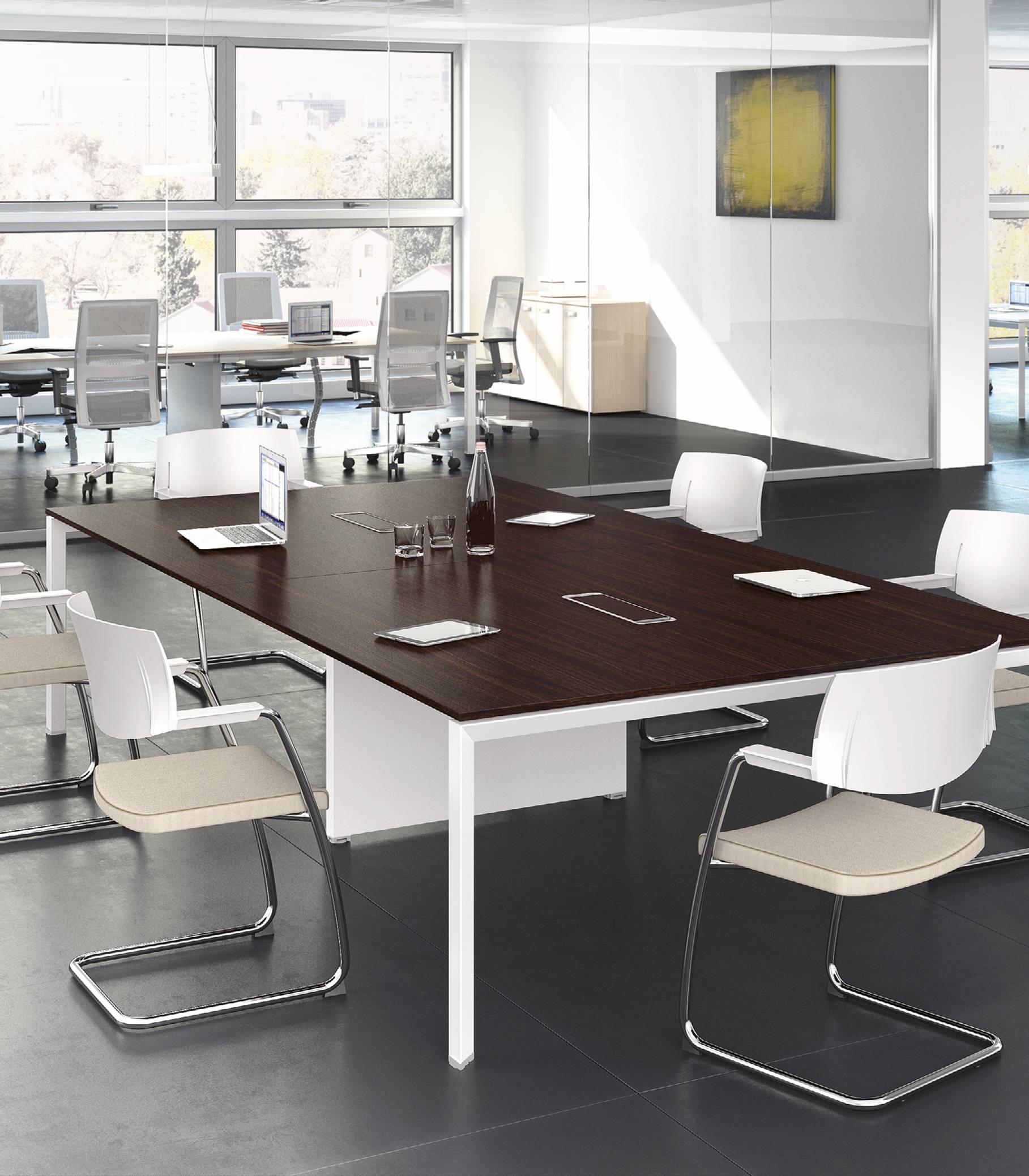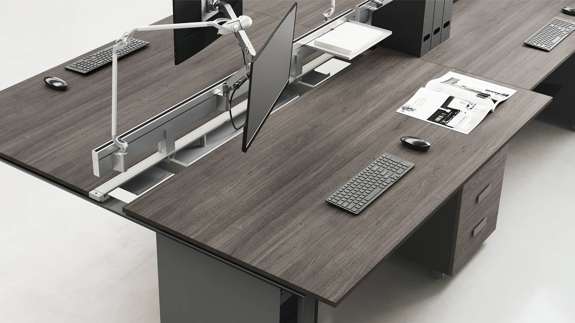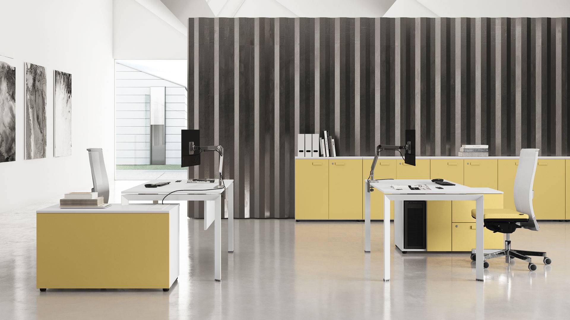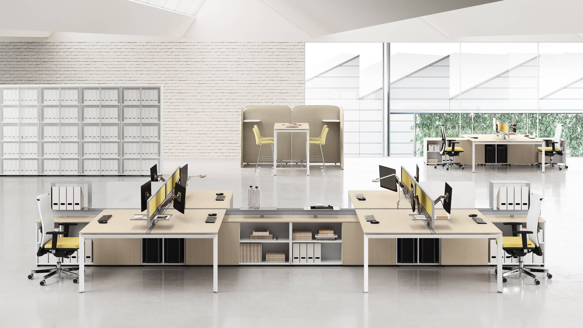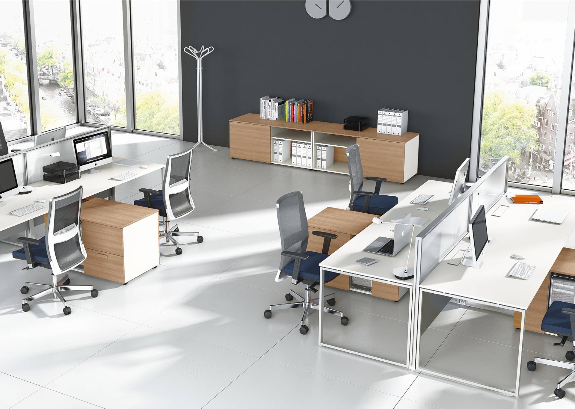 La qualità, gli accessori tecnologici, i materiali, le finiture e i colori danno vita ad un arredamento completo per gli uffici operativi. La linea 5° Element OP offre una ampia gamma di soluzioni con elementi coordinati per arredare per intero tutta la zona lavorativa. Dai piani di lavoro alle cassettiere su ruote, ogni elemento si integra gradevolmente con gli altri, senza dimenticare l’ottimo rapporto tra qualità e prezzo