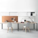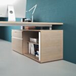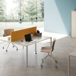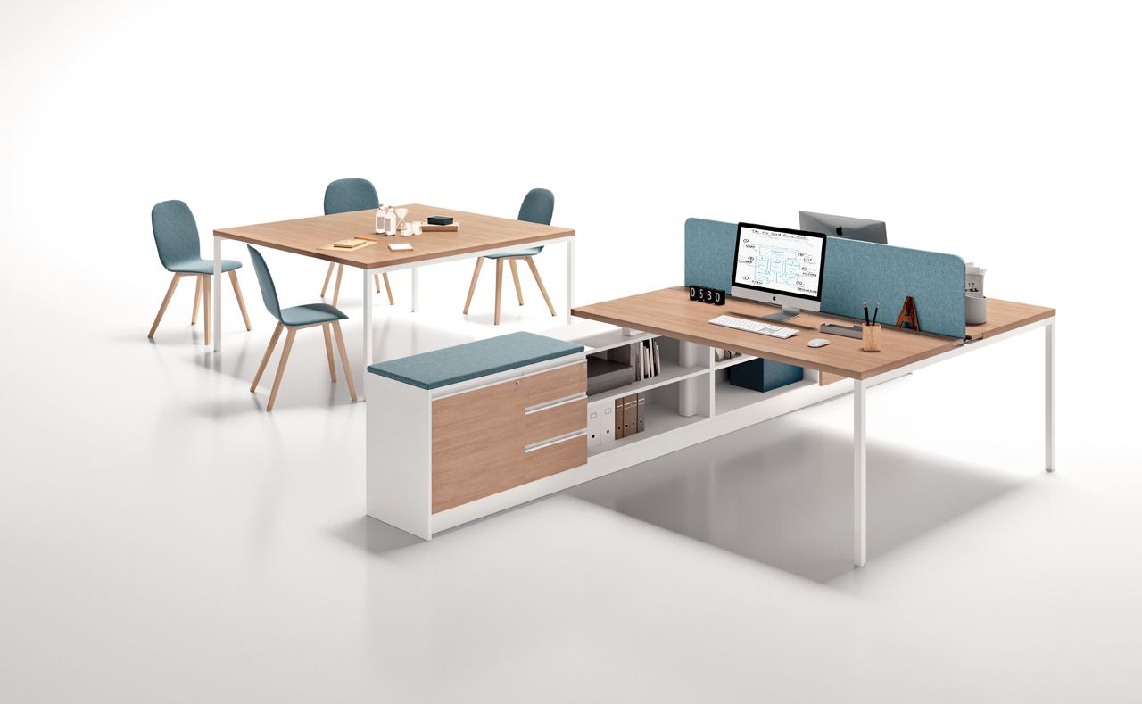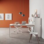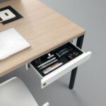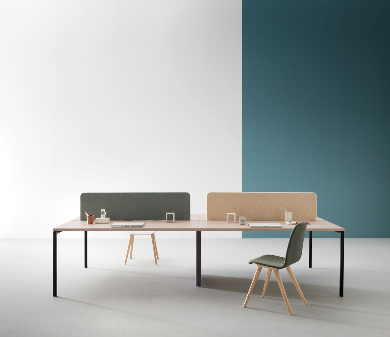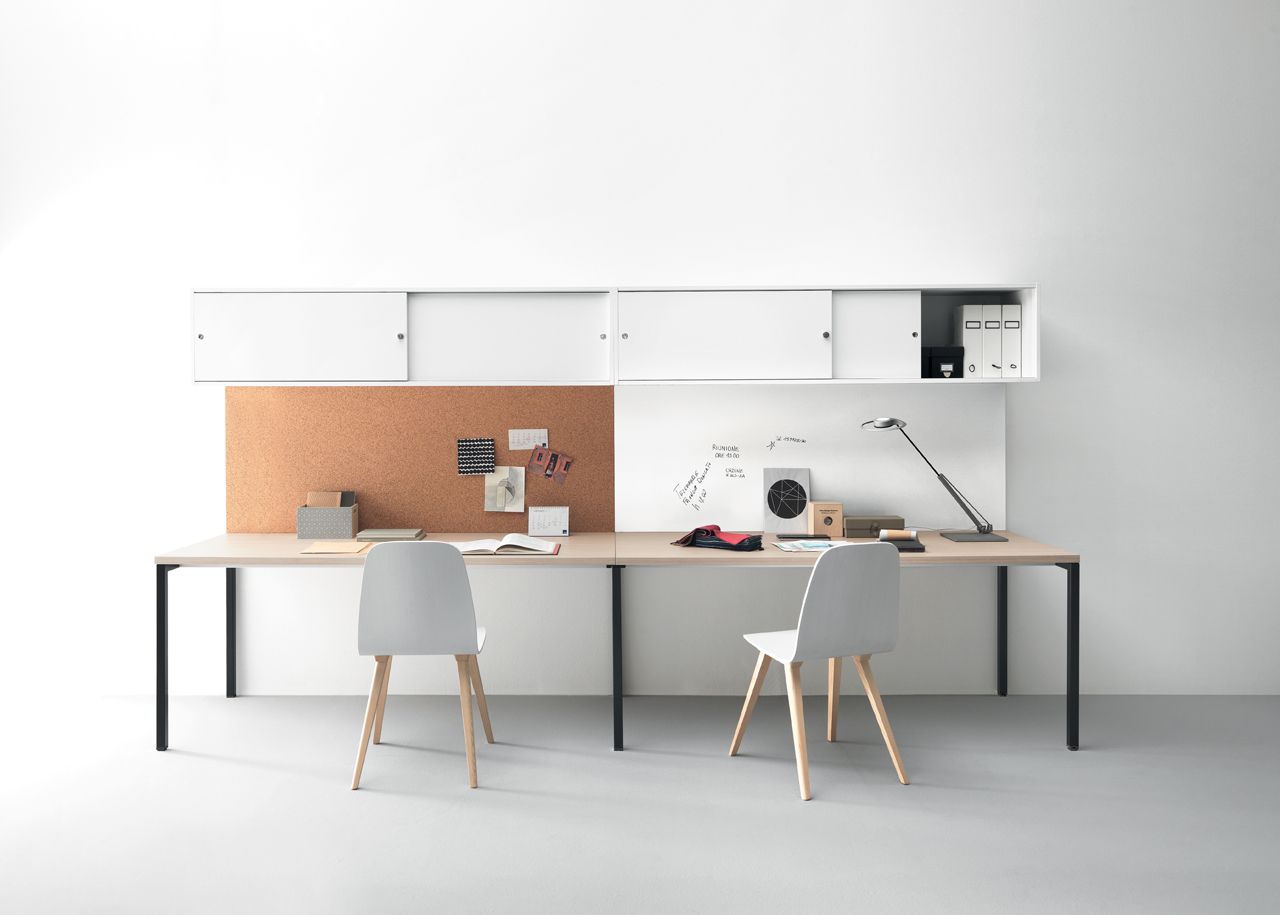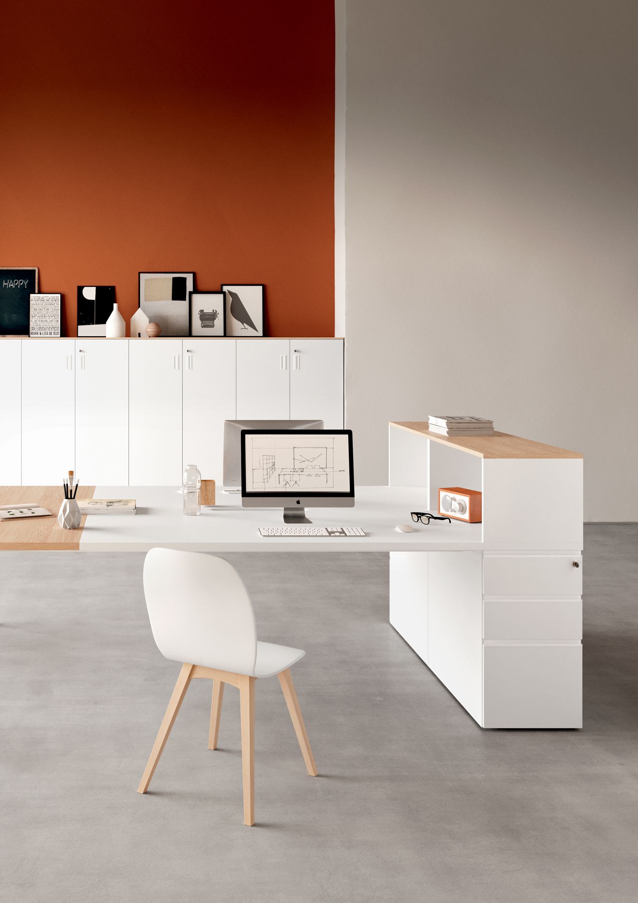 La collezione Agile per l’ufficio operativo è caratterizzata da linee semplici e geometriche arricchite dalla possibilità di scelta tra due tipologie di spessori dei piani, 14 o 30 mm, e dalla varietà delle finiture della gamba.