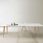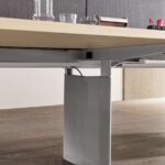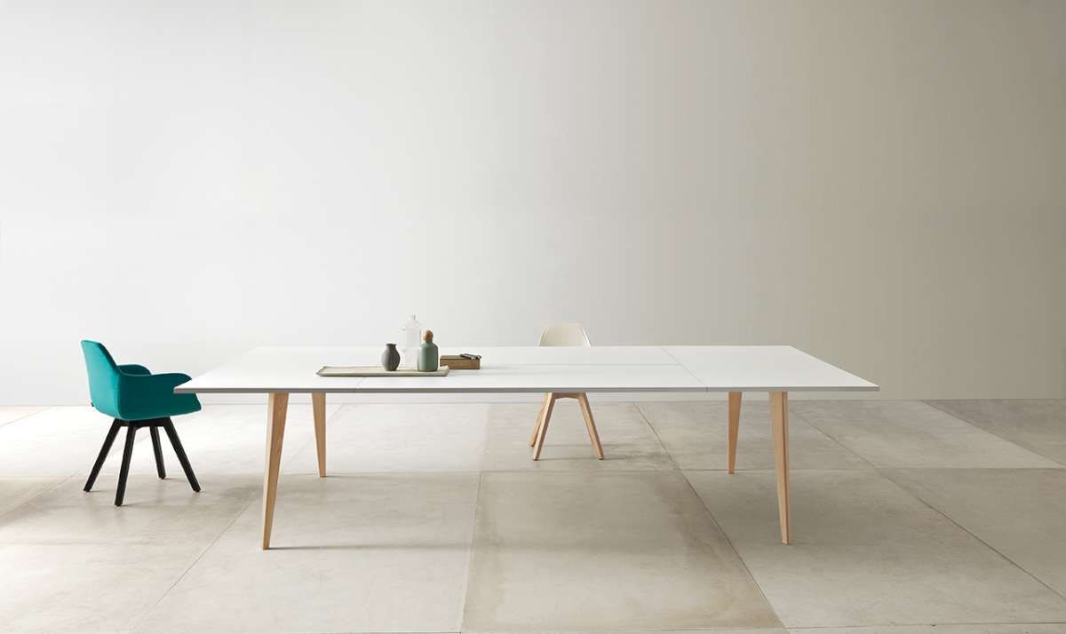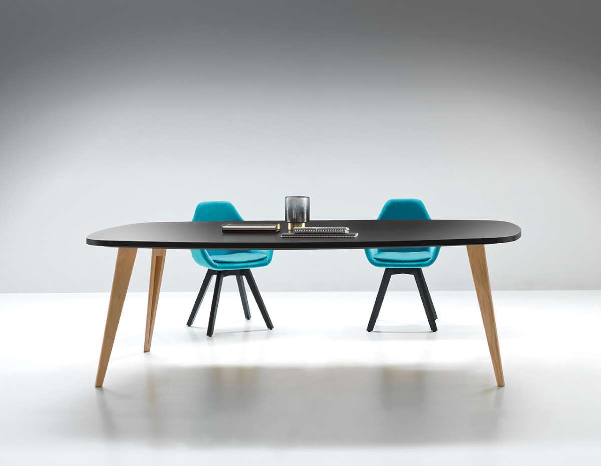 I piani della linea possono Pigreco possono essere melaminico e laccato spessore 30 mm, abbinati a gambe in legno, cromate o laccate.
