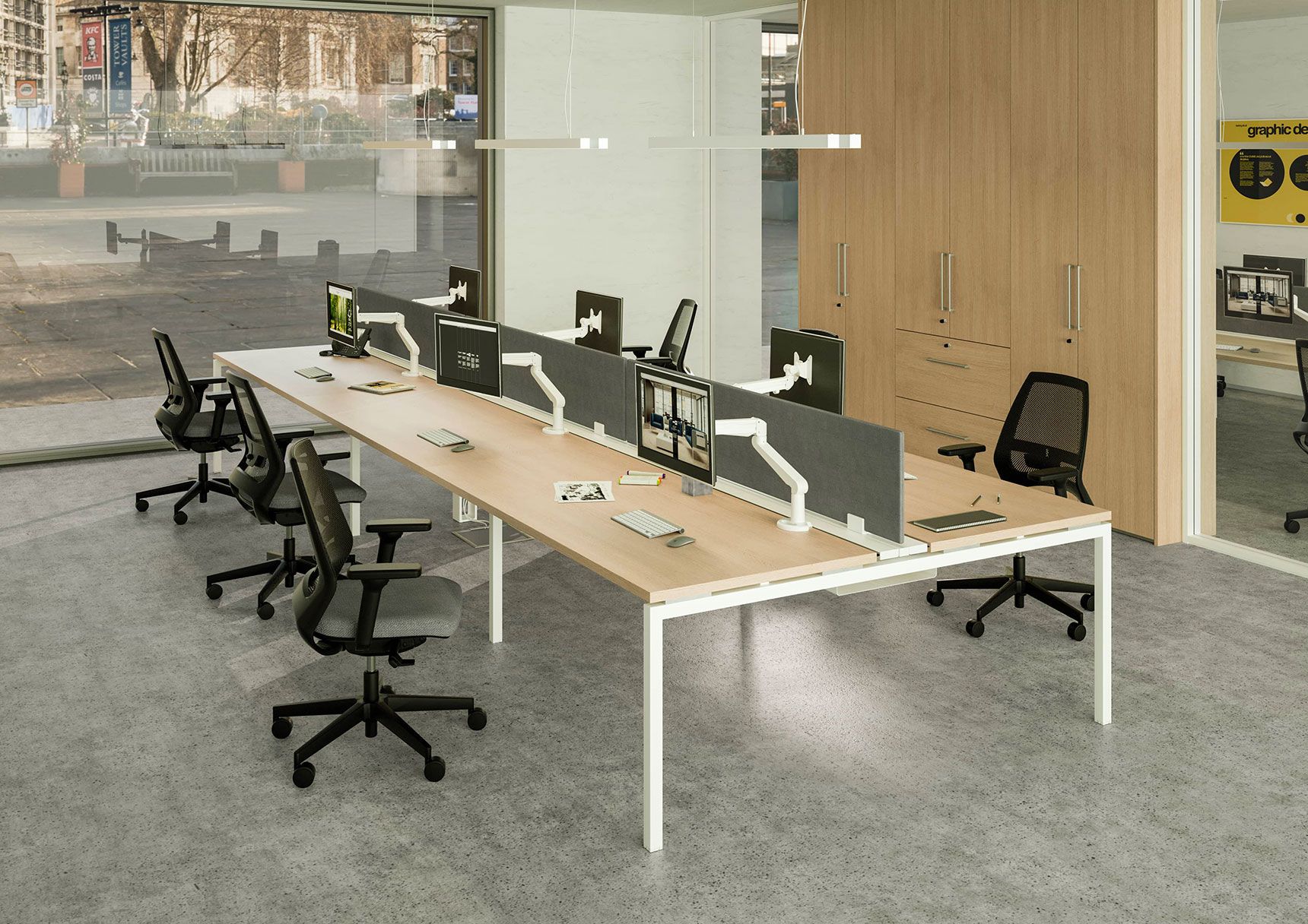 Le scrivanie con gambe metalliche a ponte o a T sono una soluzione fra le più moderne per arredare un ufficio contemporaneo. Perfette per rendere l’ambiente di lavoro uno spazio pratico ed esteticamente pulito, le scrivanie per l’ufficio operativo dotate di gambe lineari sono prontamente adattabili ad ogni situazione d’uso. La loro modularità inoltre permette di dare vita a spazi configurabili per tutte le esigenze operative.