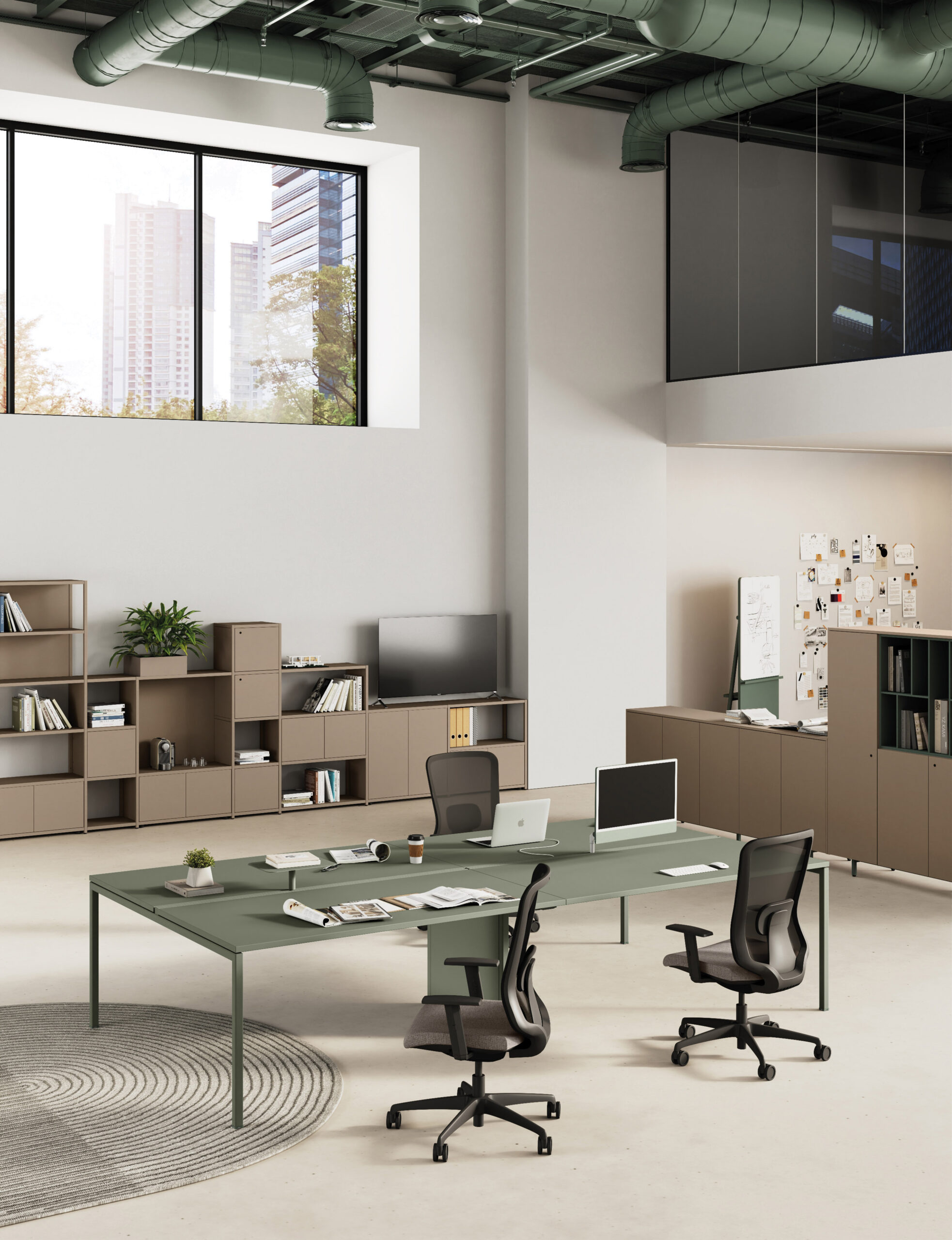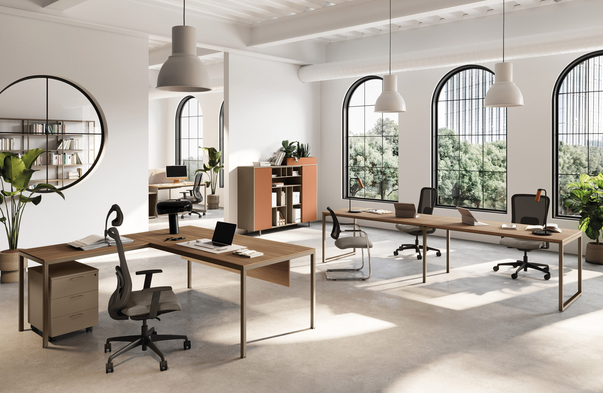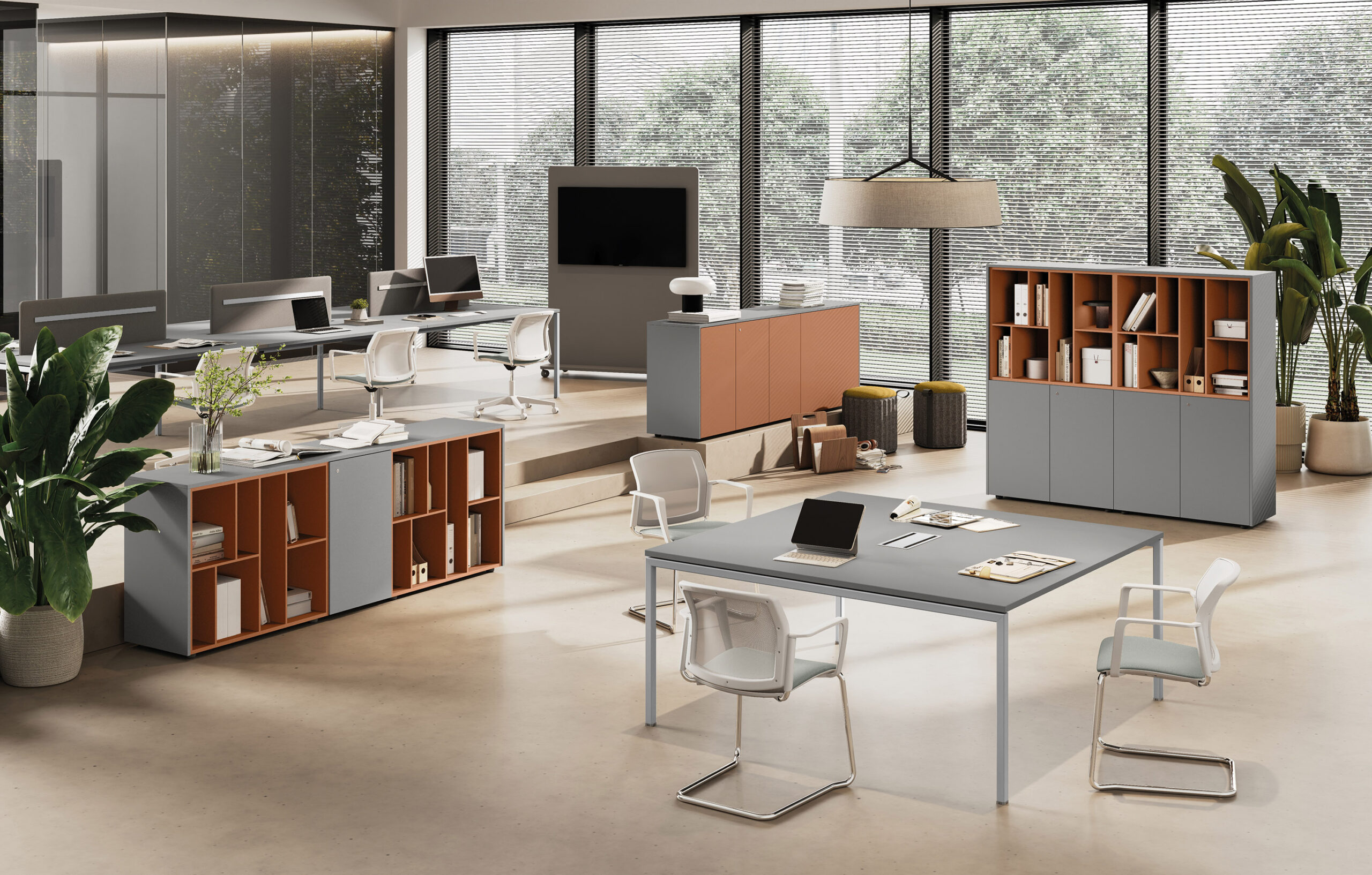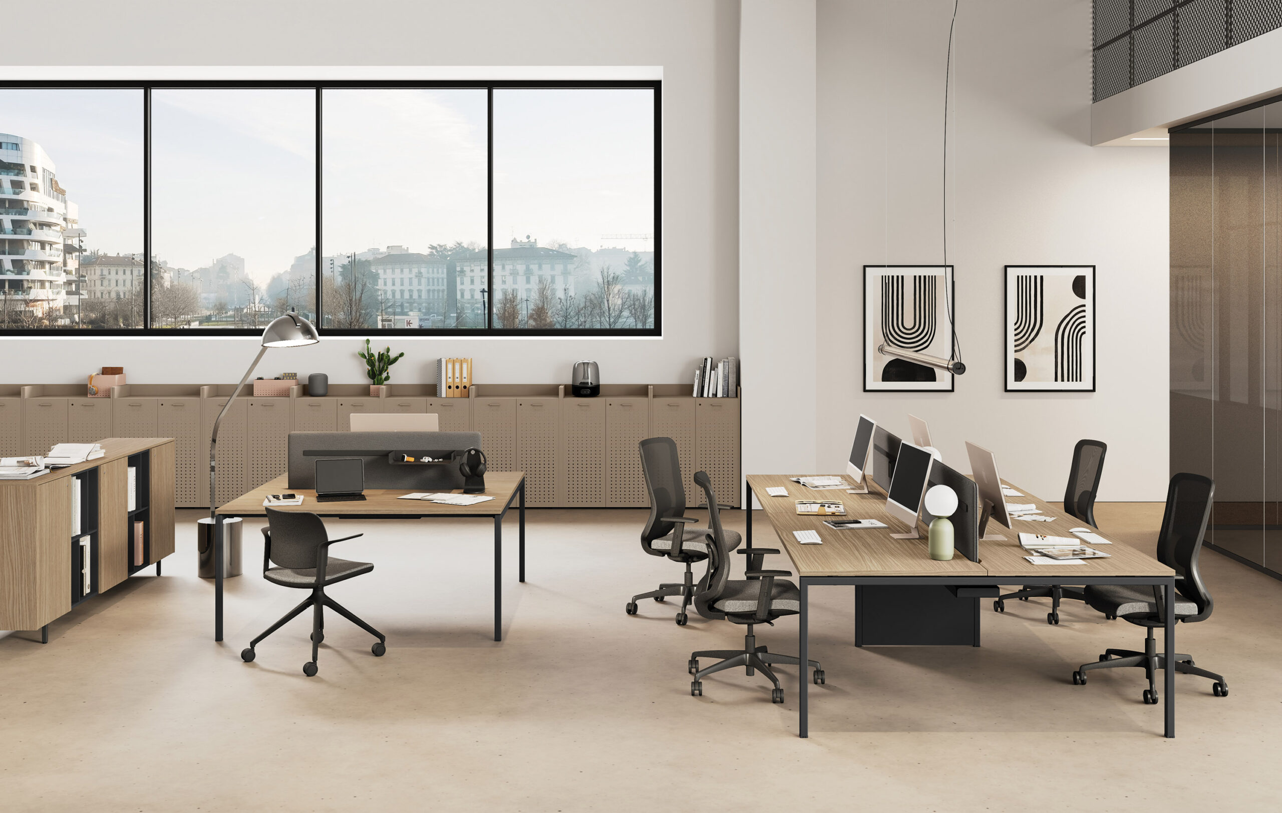 Sigma è un sistema di scrivanie per ufficio che incarna il perfetto equilibrio tra leggerezza, sobrietà e semplicità. Ogni elemento è progettato per essere essenziale ma riconoscibile, capace di integrarsi armoniosamente in qualsiasi ambiente lavorativo senza rinunciare alla sua forte identità