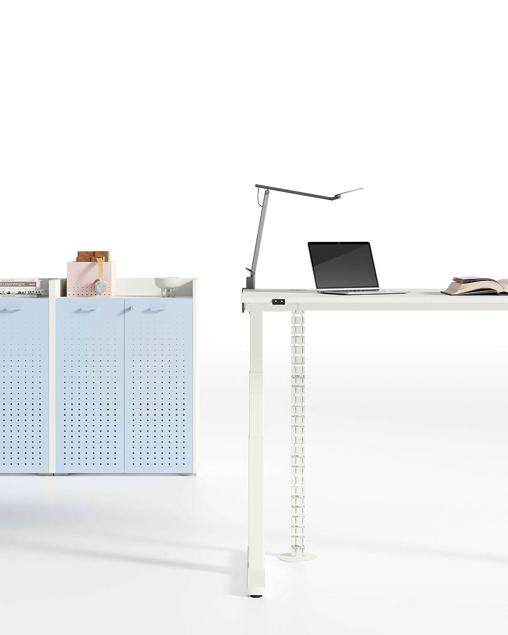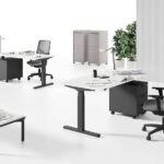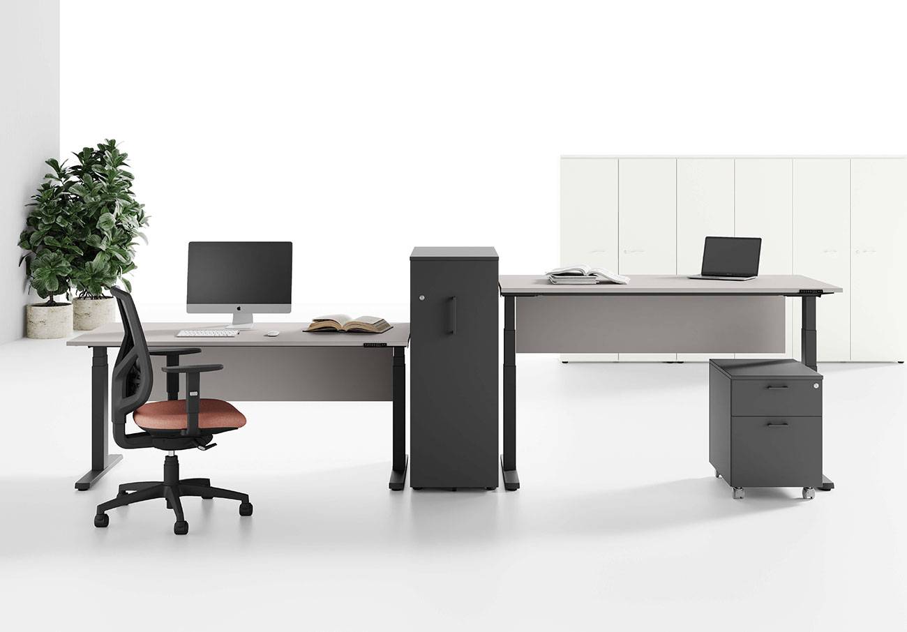 Le postazioni con piano regolabile in altezza della linea UP incarnano l’ergonomia e la versatilità, offrendo la possibilità di variare la postura durante la giornata lavorativa e di adattare l’ambiente alle esigenze individuali.