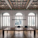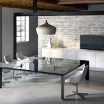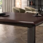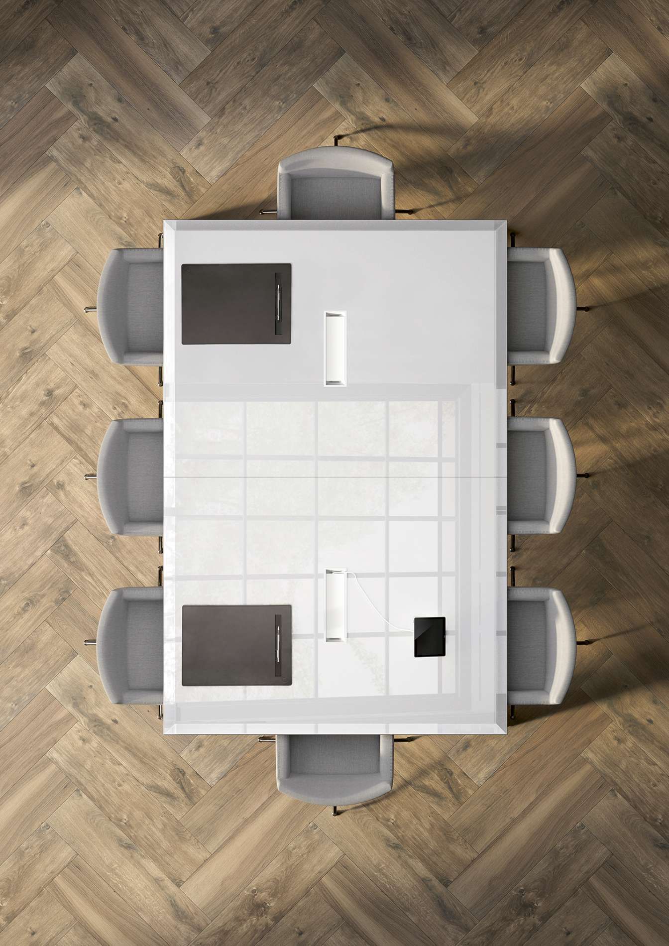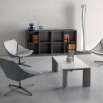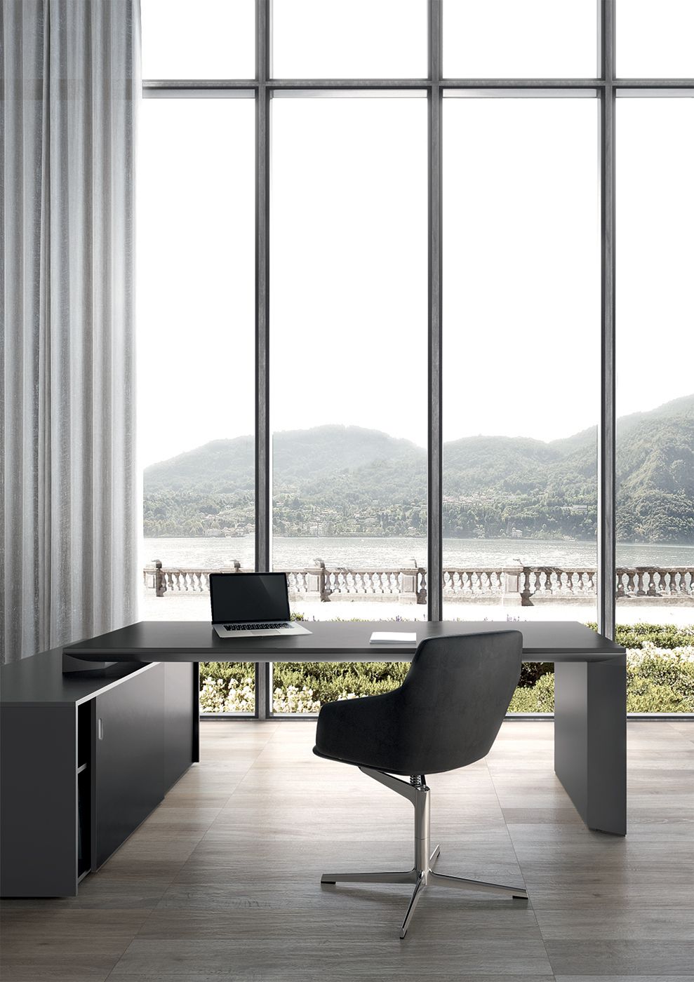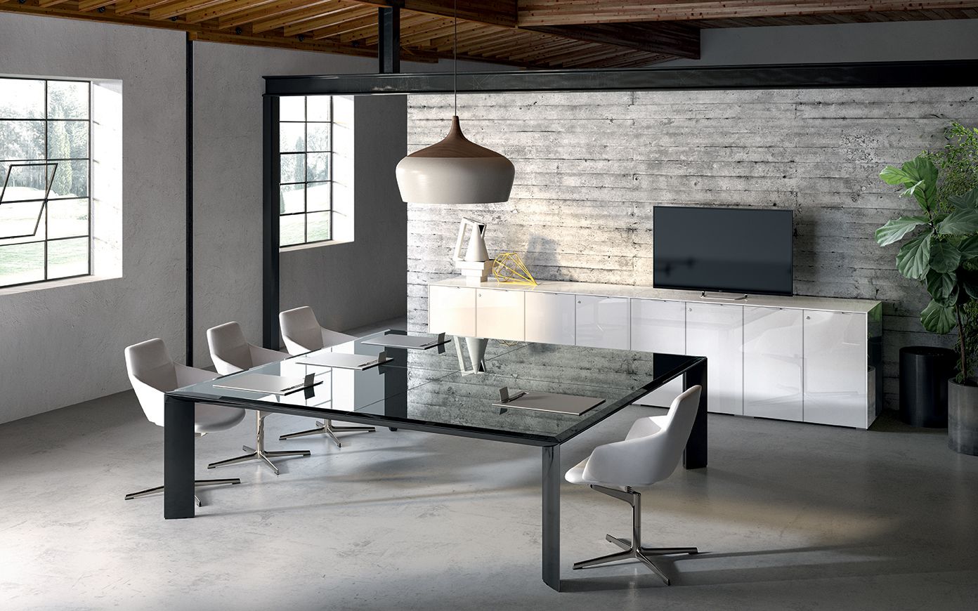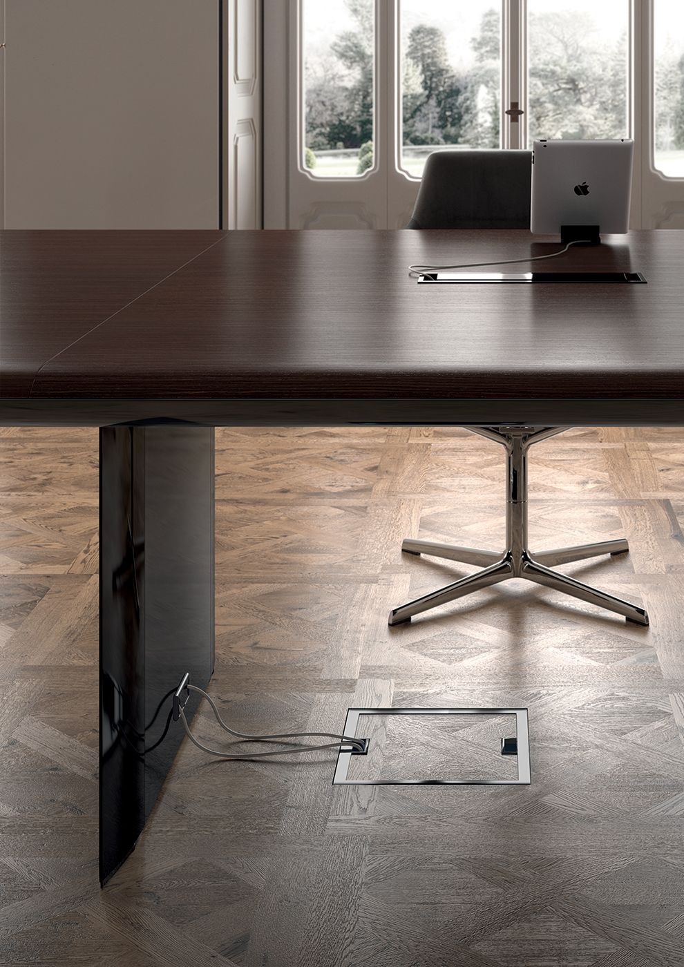 La collezione per l’ufficio presidenziale Kono concilia estetica, prestigio ed essenzialità. Sensazioni ed emozioni classiche, naturali o glamour grazie al sistema strutturale in alluminio che con un giunto raccorda struttura perimetrale e gambe. Design e flessibilità anche per i tavoli riunione che possono essere allungati e prevedere il contenimento e il passaggio dell’elettrificazione.