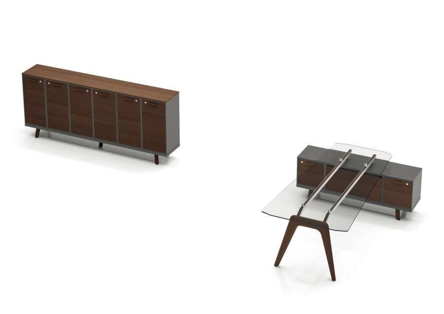 Rail è un programma completo per arredare gli uffici presidenziali che permette diverse conformazioni degli arredi grazie a scrivanie, cassettiere e altri mobili che si possono comporre per seguire le esigenze dello spazio e del manager.