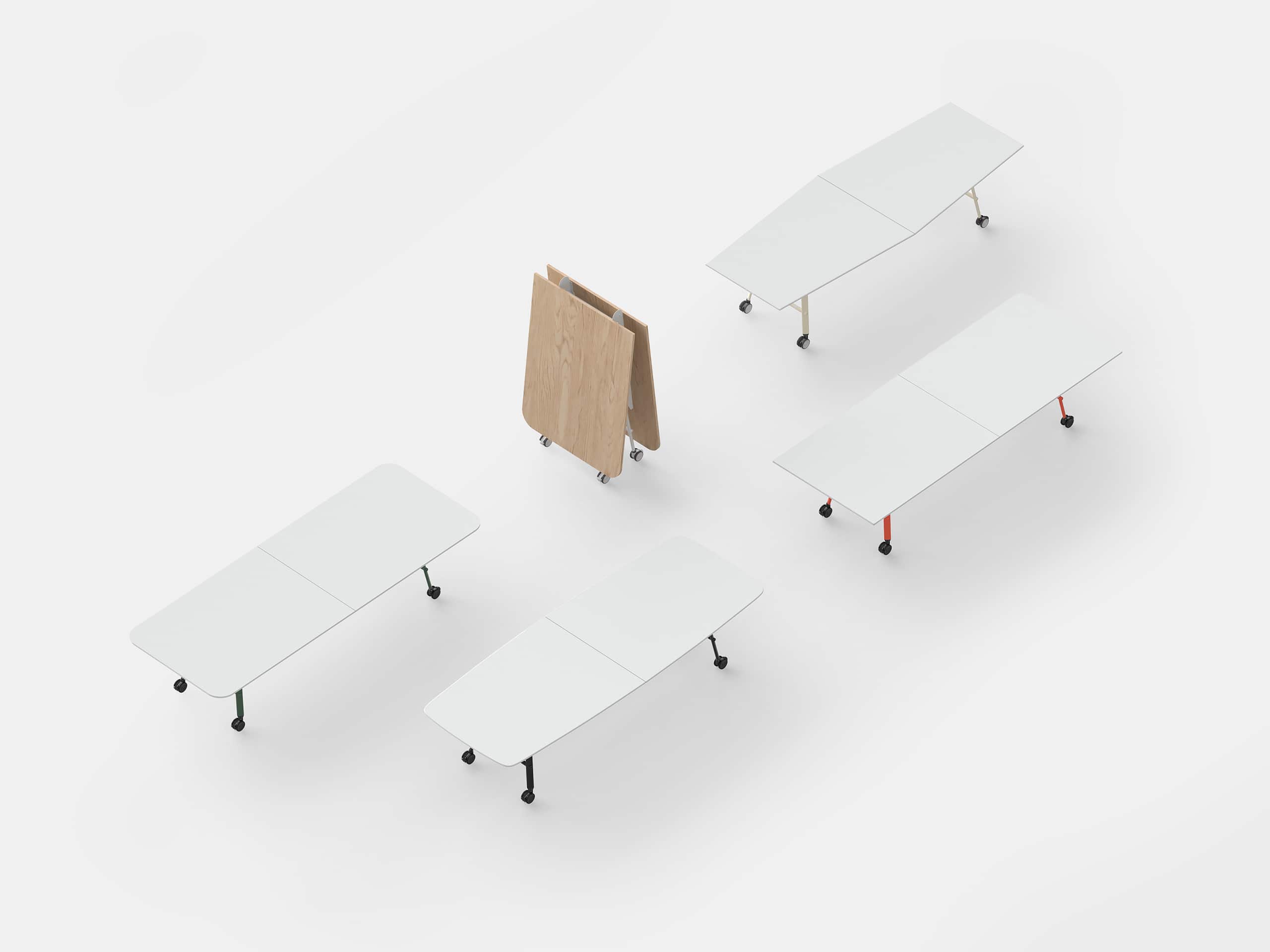 I tavoli pieghevoli e ribaltabili offrono la flessibilità necessaria per adattarsi a diverse attività e permettono un facile trasporto e maggiore spazio quando non sono in uso.