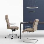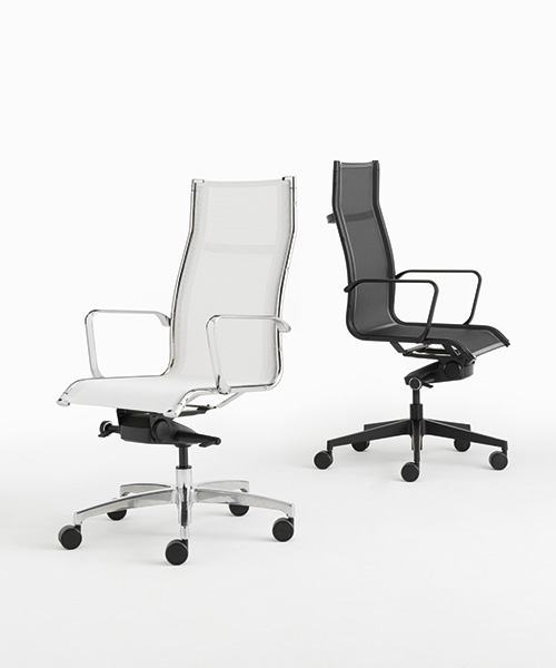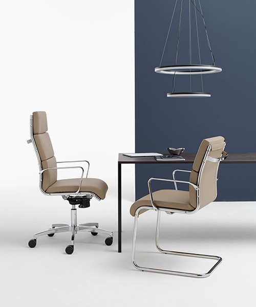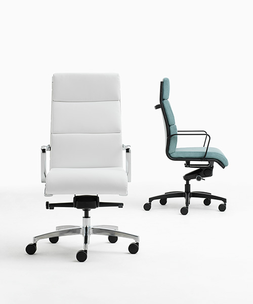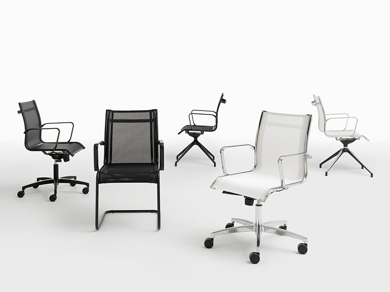 Aalborg Air è un’evoluzione estetica e funzionale che ricalca la grande dinamicità del lavoro ed è composta da poltrona a schienale alto e poltroncina visitatore in tre tipologie di basi.