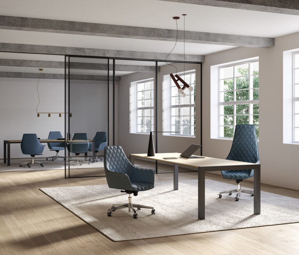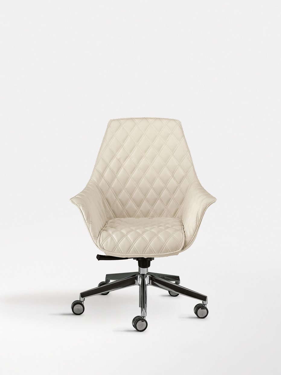 La poltrona direzionale dal design raffinato Kimera è caratterizzata dalla seduta con imbottitura liscia o con cuciture romboidale. Scarica la documentazione per scoprire cosa rende unica questa seduta.