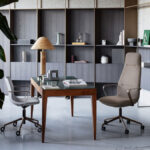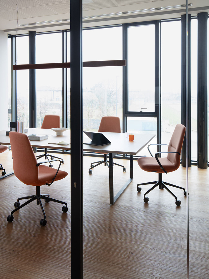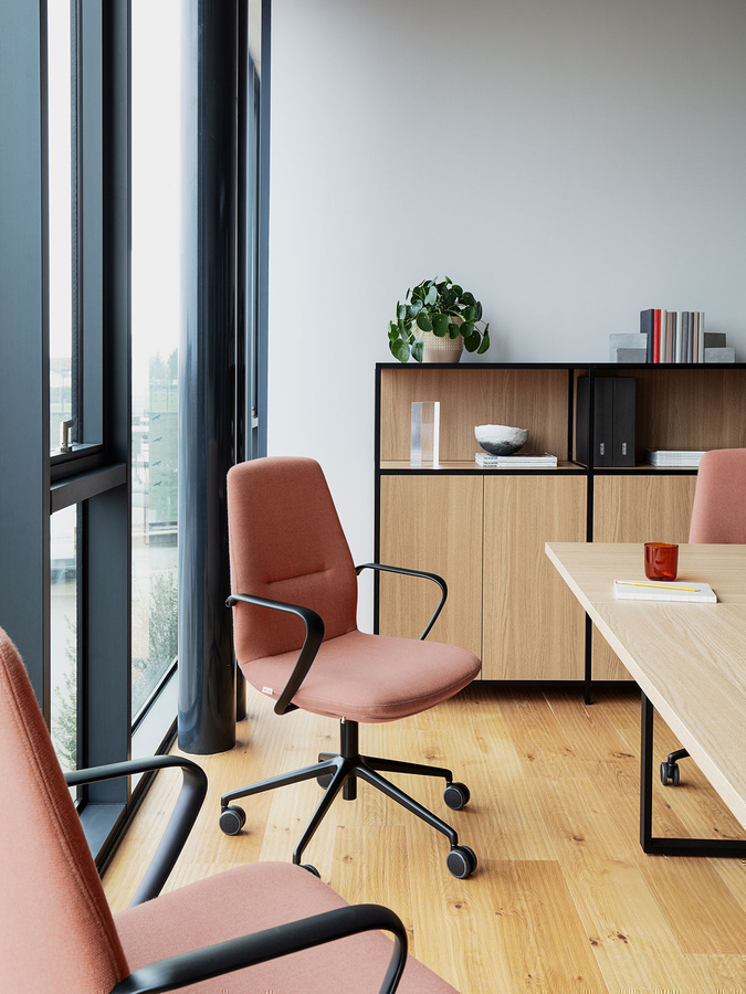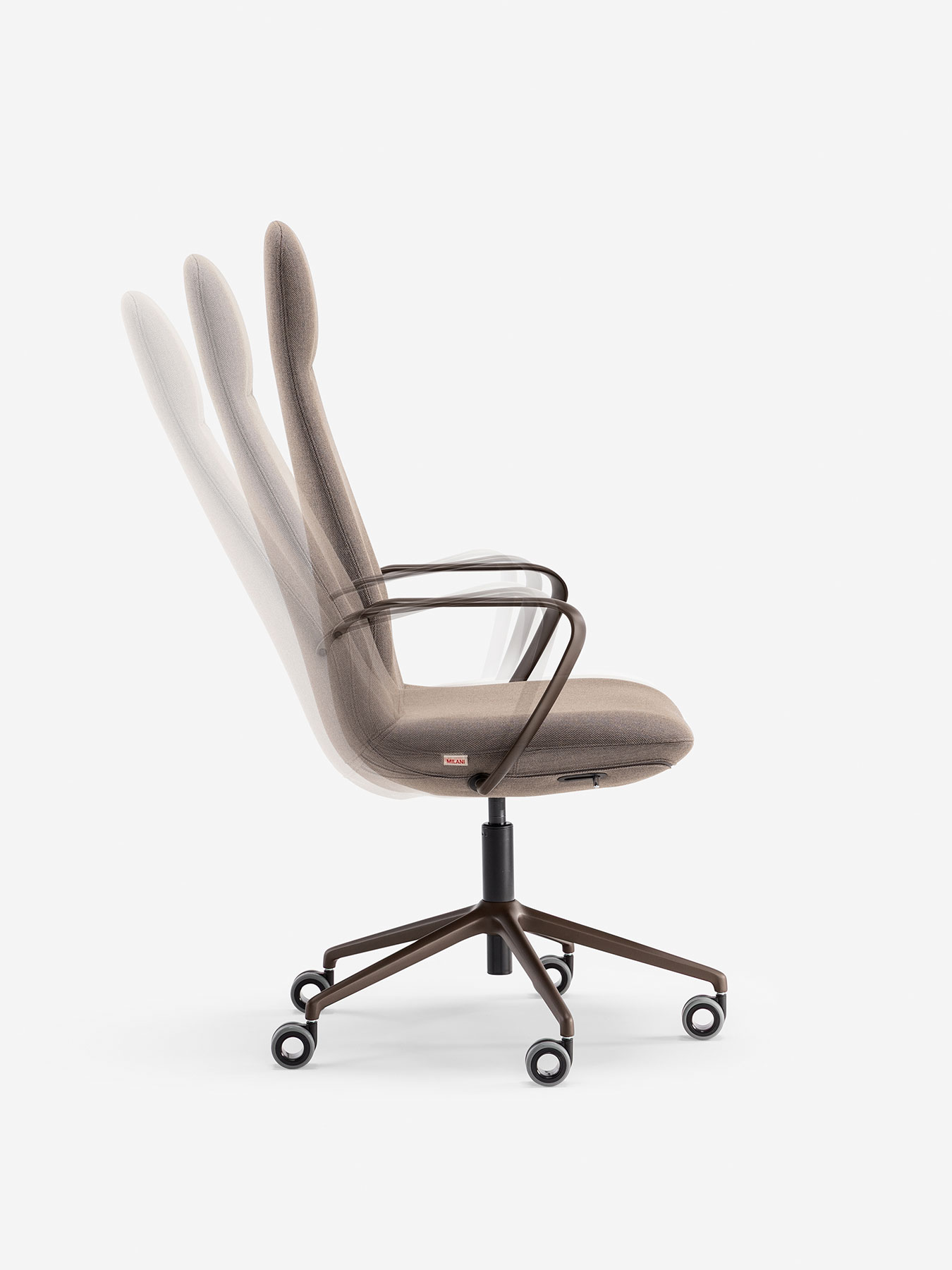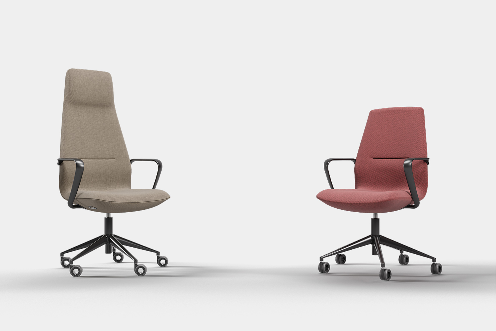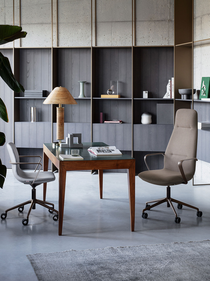 Poltrona presidenziale e direzionale sincronizzata autopesante, con schienale alto e medio in rete o completamente imbottito, con supporto lombare regolabile in altezza. Meccanismo syncro. Braccioli regolabili in altezza.