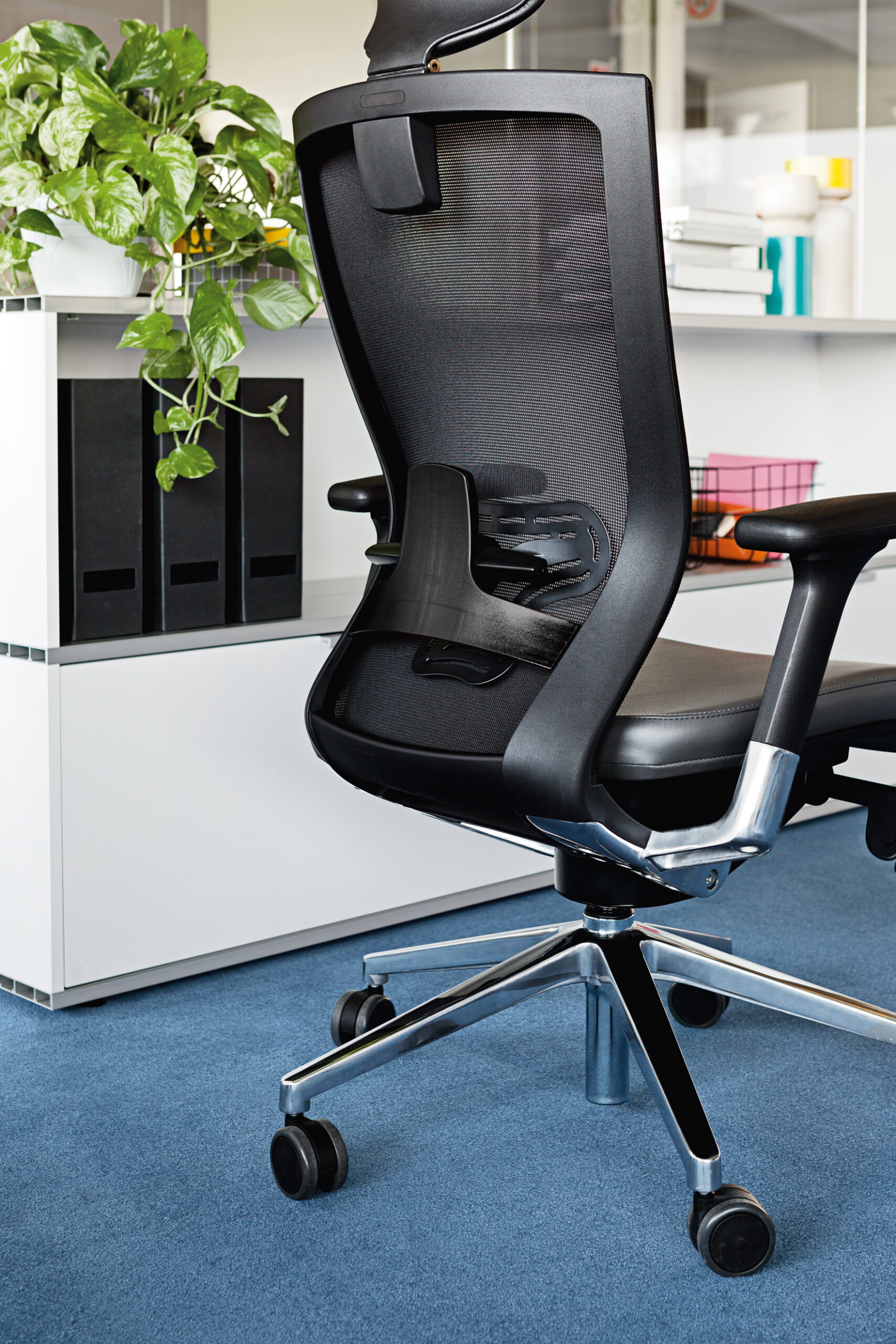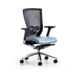 Disponibile con schienale in rete nera e dettagli in alluminio lucido, integra un traslatore di seduta. Il supporto lombare, regolabile in altezza e profondità , garantisce un sostegno personalizzato, mentre i braccioli 3D permettono diverse regolazioni per adattarsi a ogni esigenza.