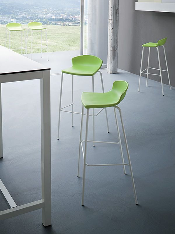 Easy è uno sgabello ergonomico, impilabile e dal design raffinato. Leggero e robusto, è disponibile in due altezze con strutture a quattro gambe cromate o verniciate per esterni. La vasta gamma di colori lo rende perfetto per qualsiasi ambiente.