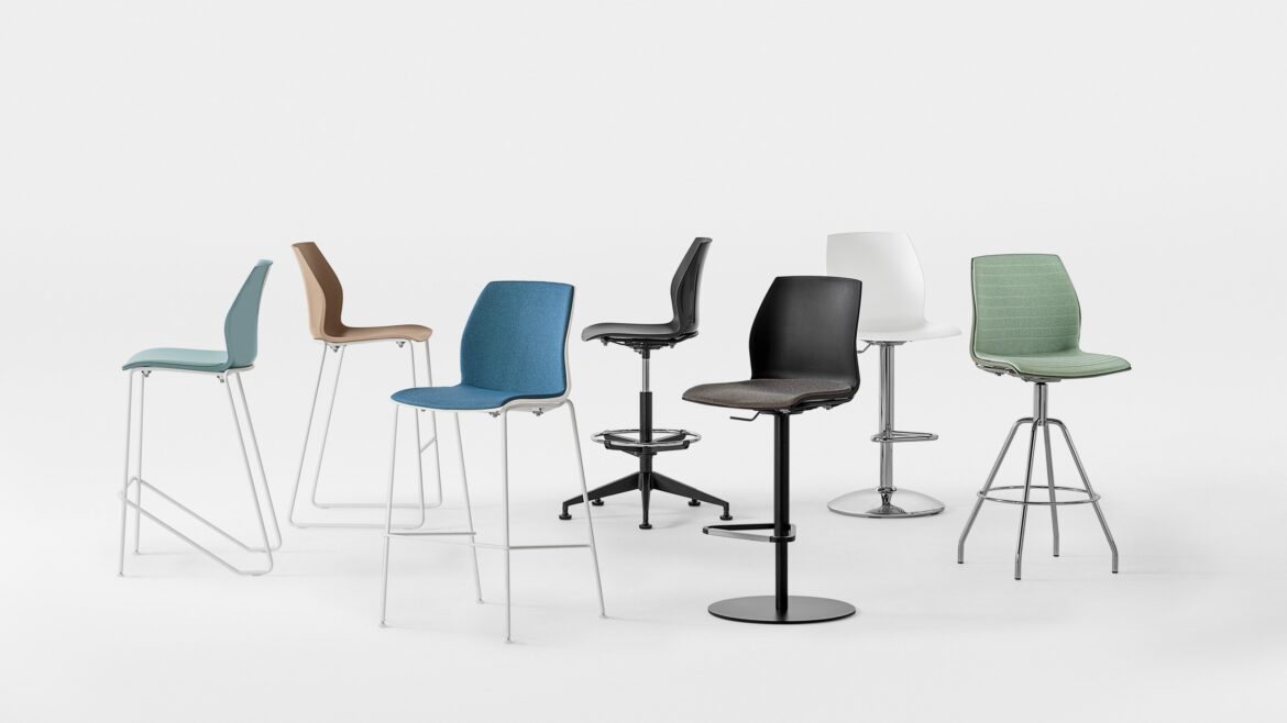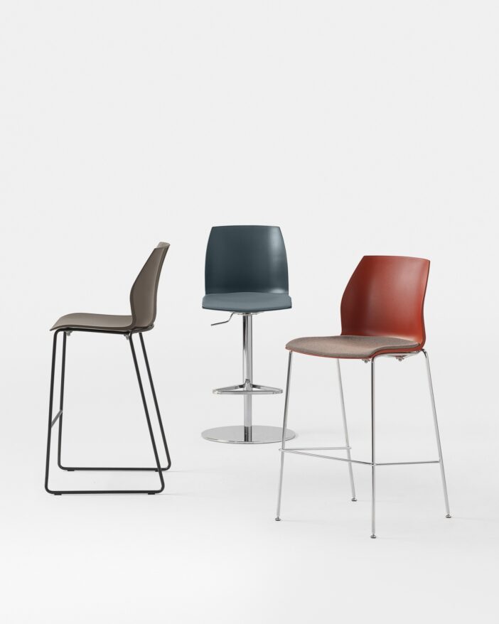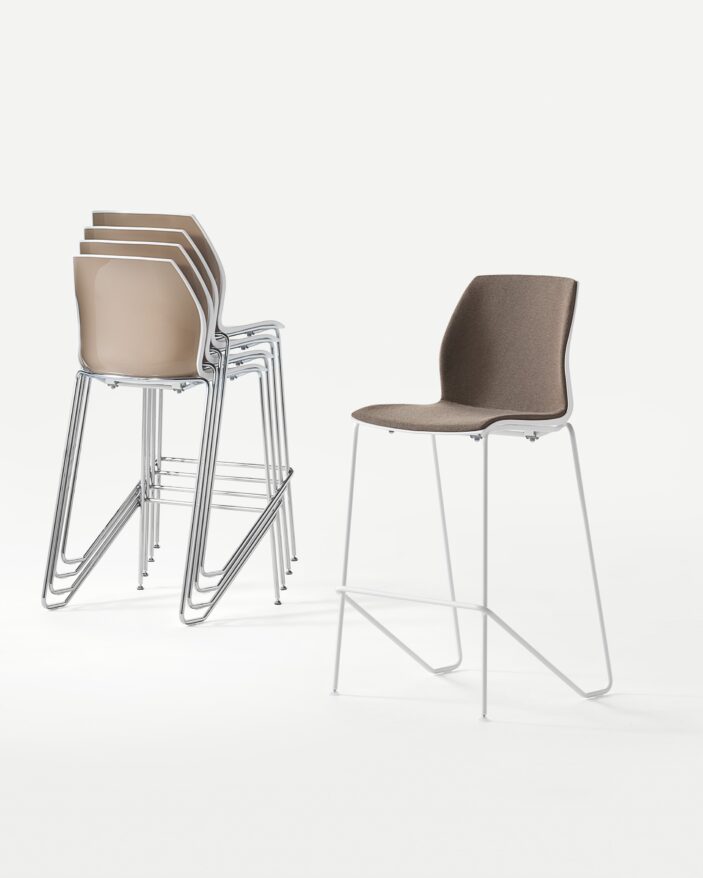 Lo sgabello in polipropilene Kalea è disponibile nelle versioni 4 gambe, a slitta, semi slitta, 4 gambe girevole, e con base tonda piana o convessa. Disponibile in varie tonalità , lo sgabello in polipropilene Kalea può essere monocolore, bicolore e rivestito in varie soluzioni.