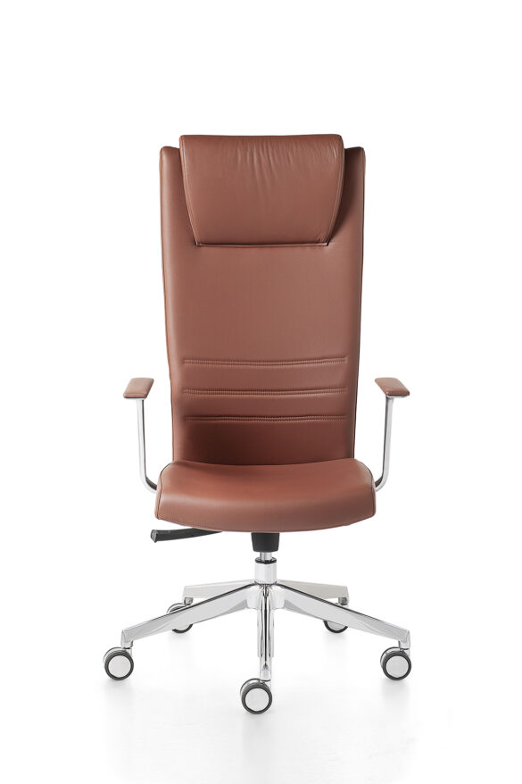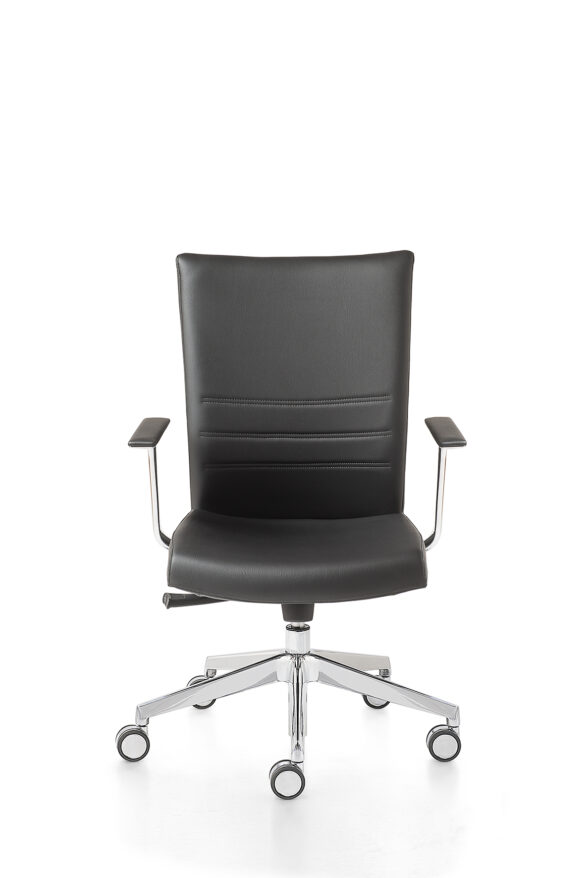 La poltrona direzionale King è caratterizzata da sedile e schienale interamente imbottiti e rivestiti e dall’inserto in acciaio sullo schienale. Varie soluzioni di meccanismi, braccioli e basamenti. Completano la gamma versioni visitatore con telaio a slitta.