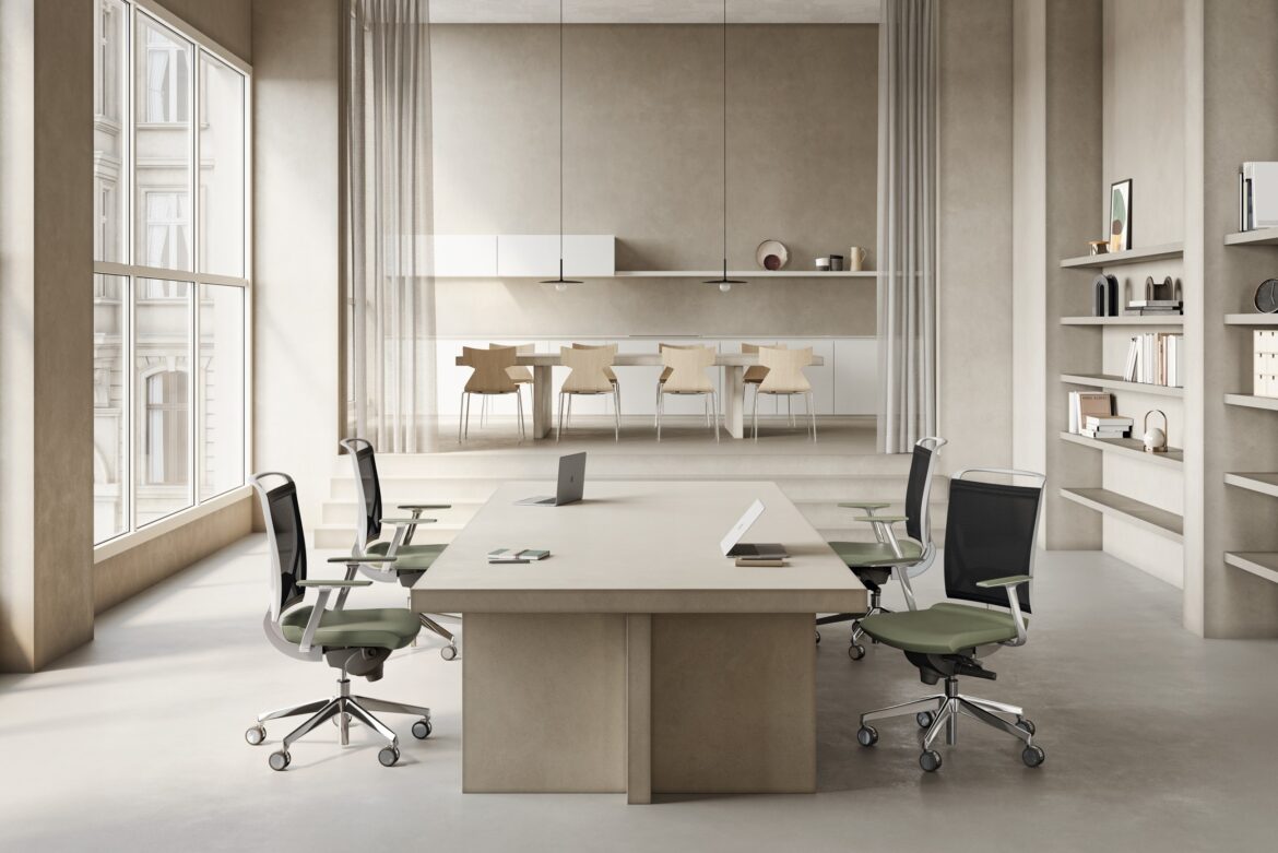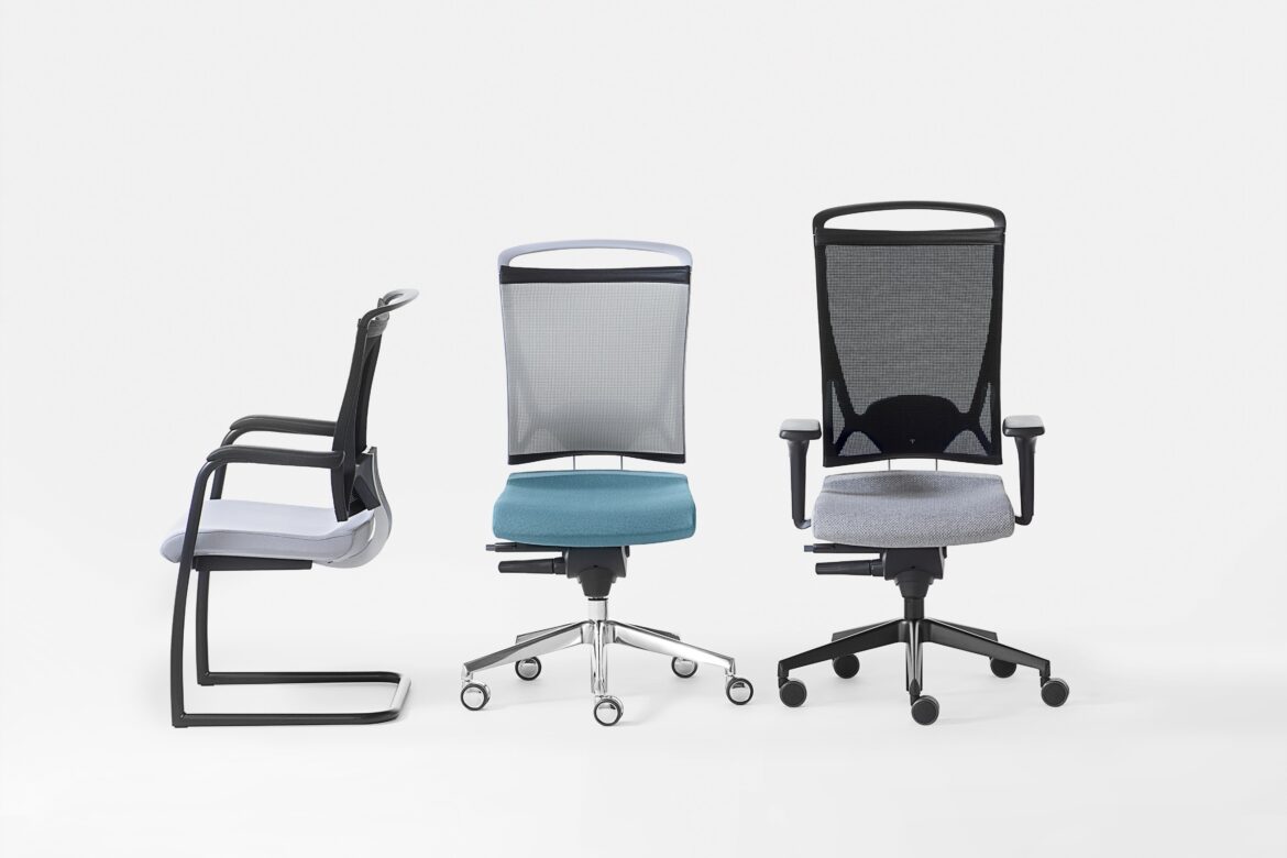 La poltrona da ufficio Korium è disponibile nelle versioni con schienale flessibile in rete traspirante. Con la struttura di colore nero o grigio, varie soluzioni di braccioli, meccanismi e basamenti.