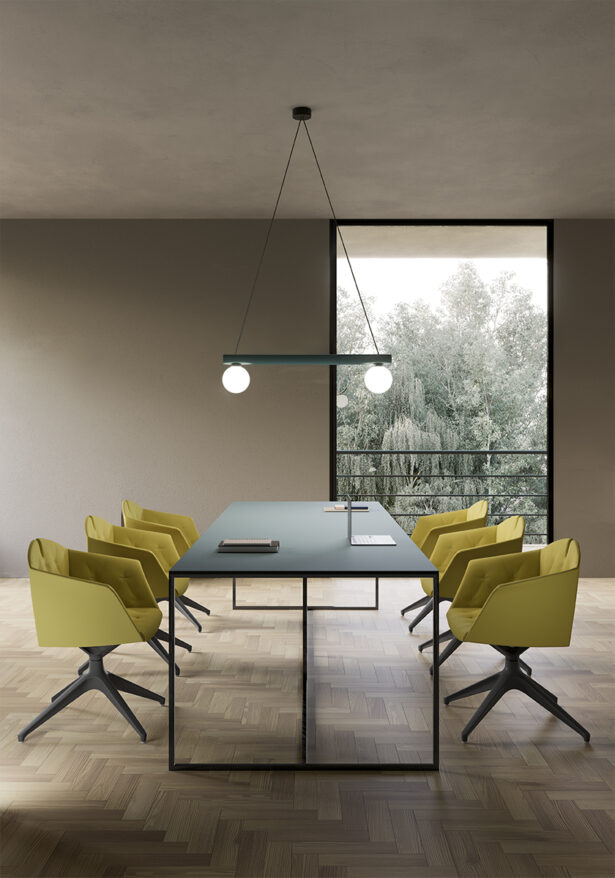 Intrigante e originale, Kuad si distingue con il suo design elaborato. Proposta con imbottitura liscia oppure trapuntata, con diverse varianti di telaio, braccioli integrati ela comodità di uno schienale flessibile. Piacere del comfort, piacevolezza dell’estetica: Kuad accoglie e affascina.