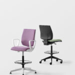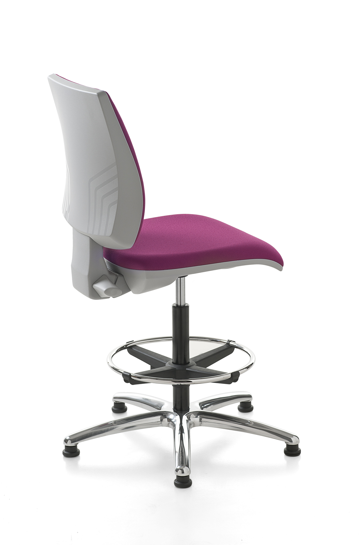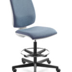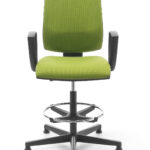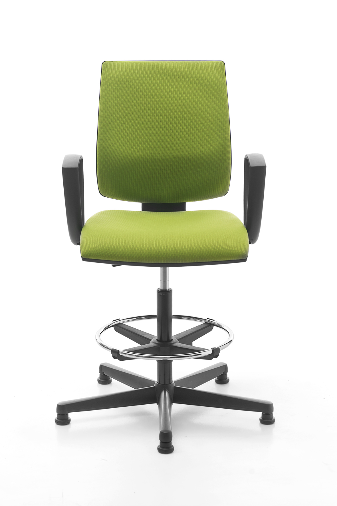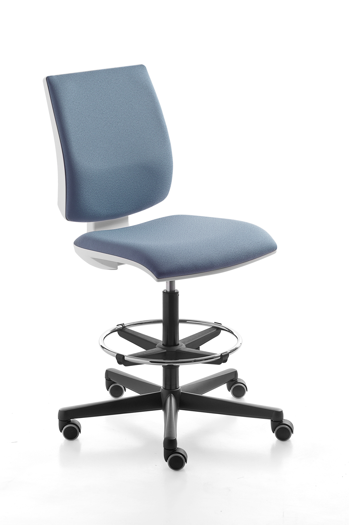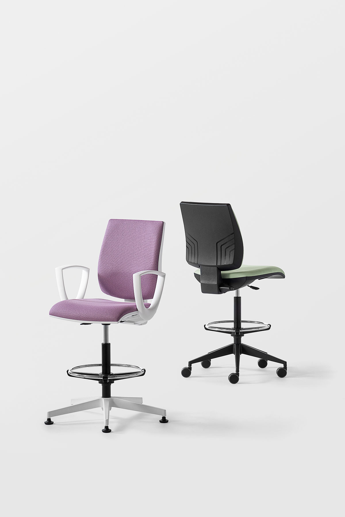 Lo sgabello da ufficio Kubix è disponibile con appoggiapiedi regolabile in altezza, con schienale inclinabile e regolabile, con o senza braccioli.