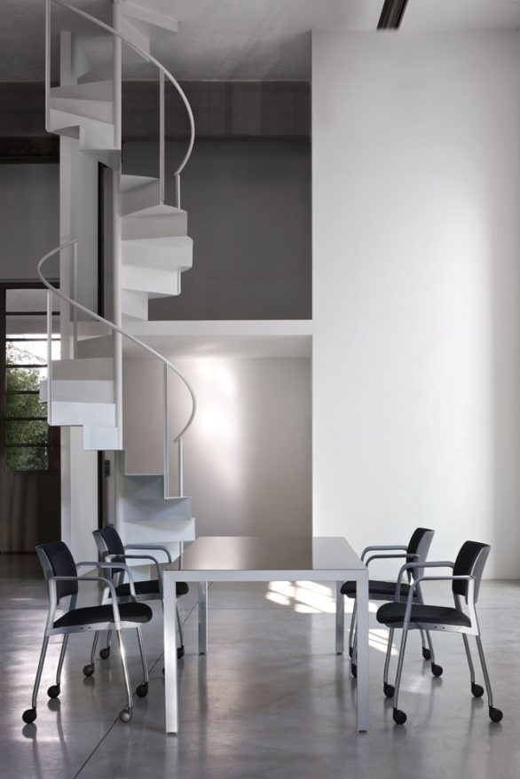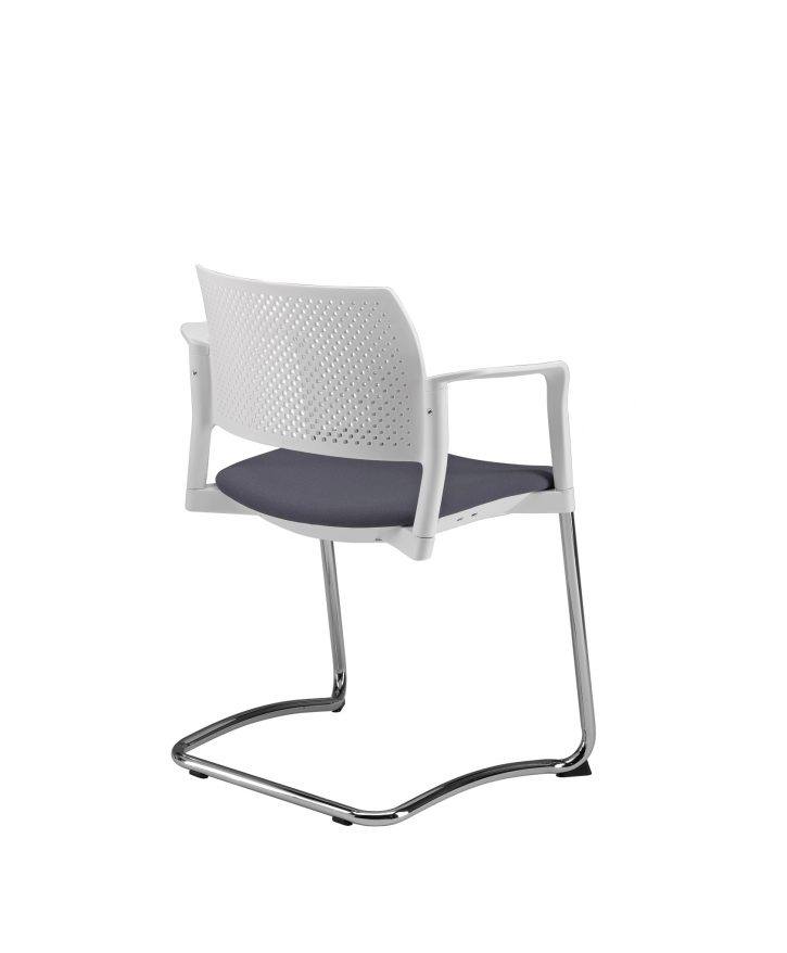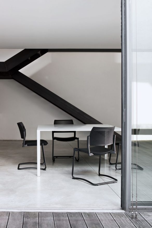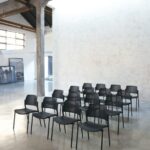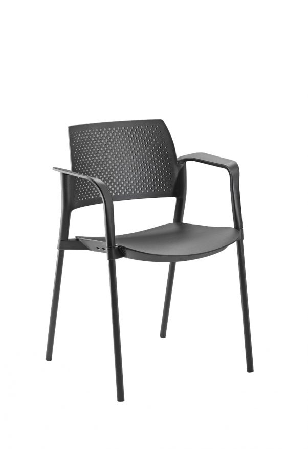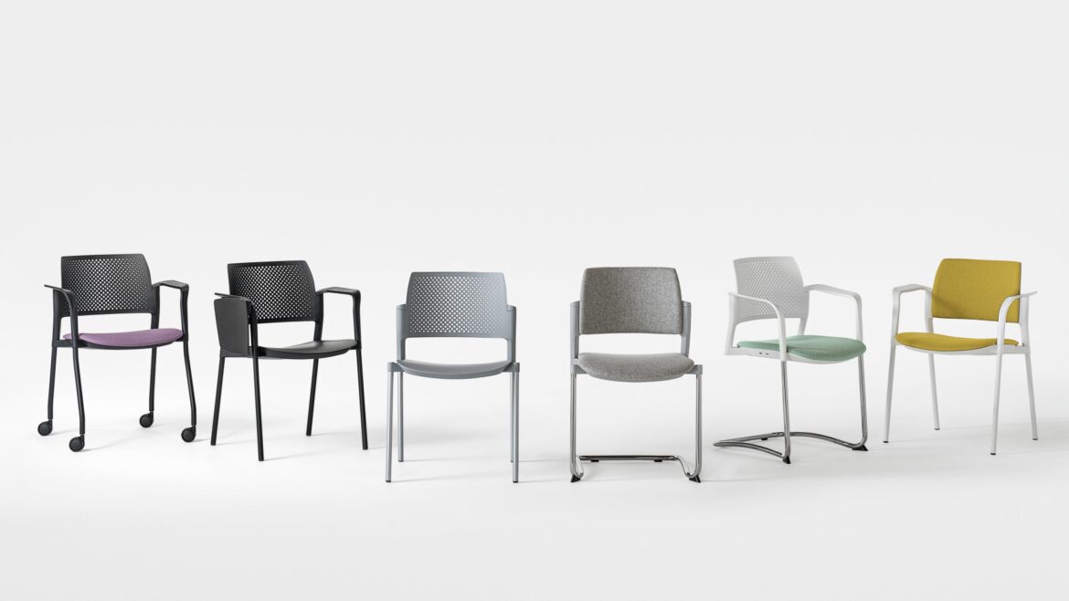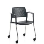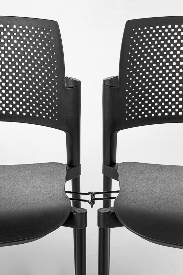 La sedia impilabile e agganciabile Kyos è disponibile con telaio 4-gambe o slitta, con o senza braccioli, nella versione in polipropilene bianco, nero e grigio, può essere sia con sedile imbottito che con sedile e schienale imbottito ed è ideale per conferenze e riunioni di piccole e grandi dimensioni. Disponibile anche nelle versioni con tavoletta scrittoio, telaio con ruote.