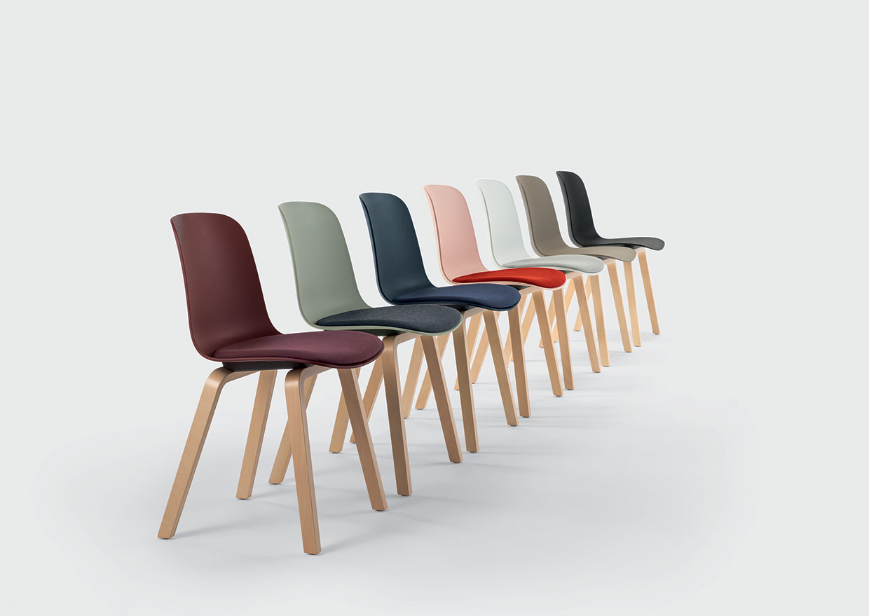 Serie di sedute multiuso e horeca con un’ampissima varietà di colori di tendenza e combinazioni. La scocca può essere in plastica a vista, con sedile imbottito e completamente rivestita. Le basi in metallo, in plastica, in legno e la versione girevole permettono alla gamma di essere inserita anche in ambienti domestici. Viene proposta anche in versione plastica riciclata.