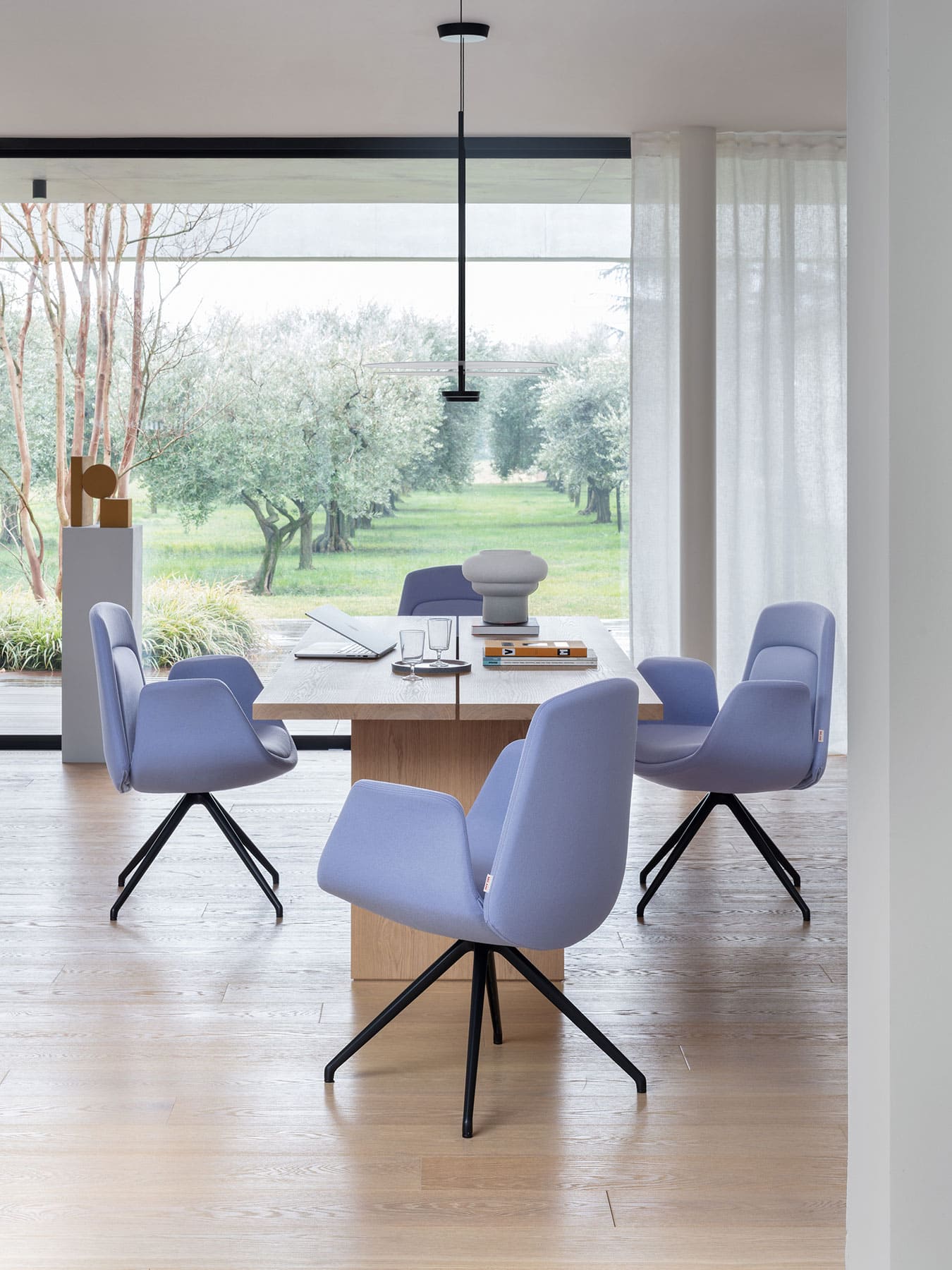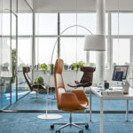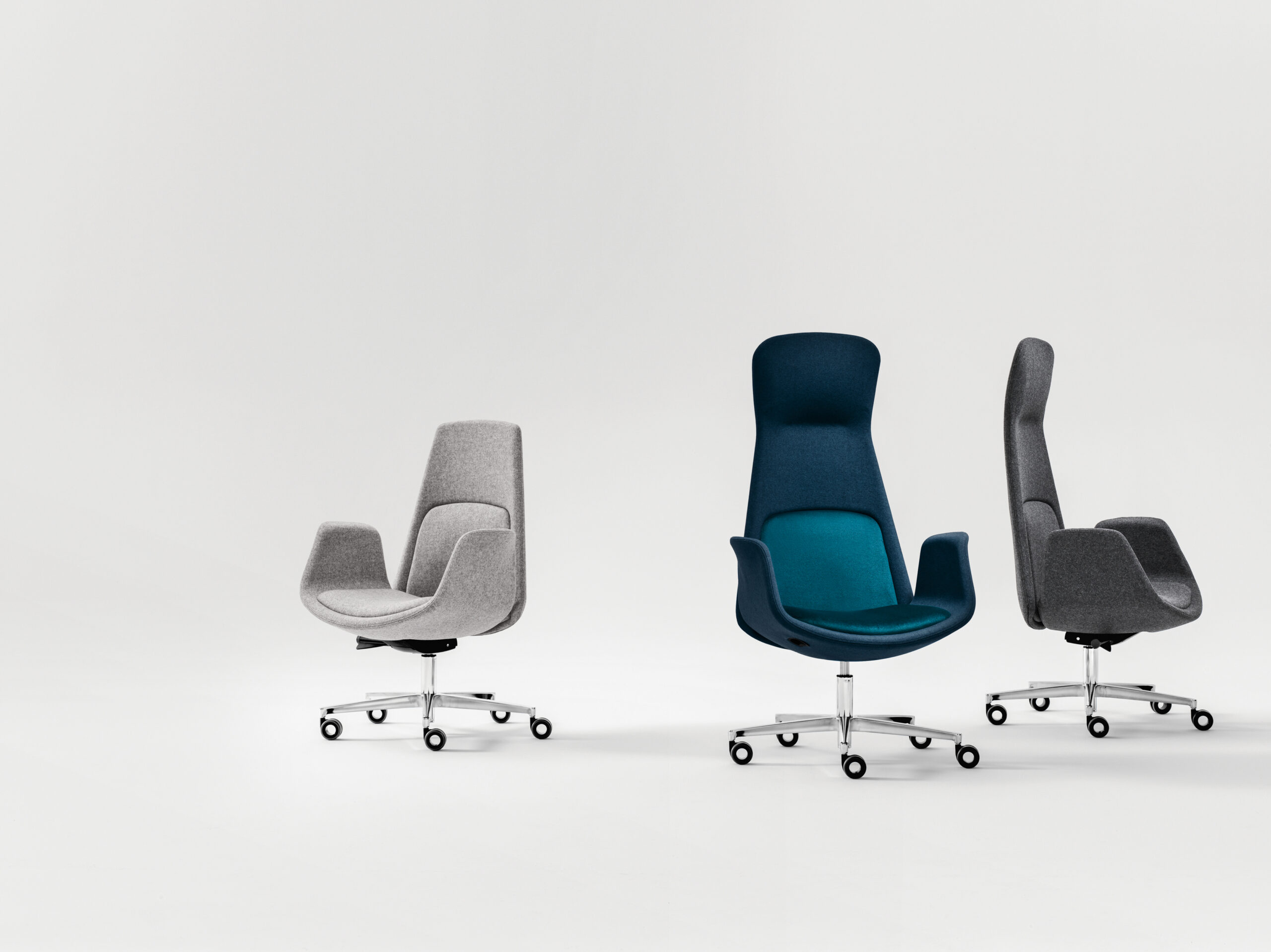 Nata come poltrona presidenziale da ufficio, Nordic è diventata una collezione completa di imbottiti e lounge per le aree d’attesa, caratterizzata dall’estetica accogliente e dalle linee curve. A rimarcare la versatilità della collezione sono i materiali – dal telaio in legno di poltrone, panche e divanetti al trespolo in metallo della lounge, dinamico e contemporaneo.