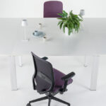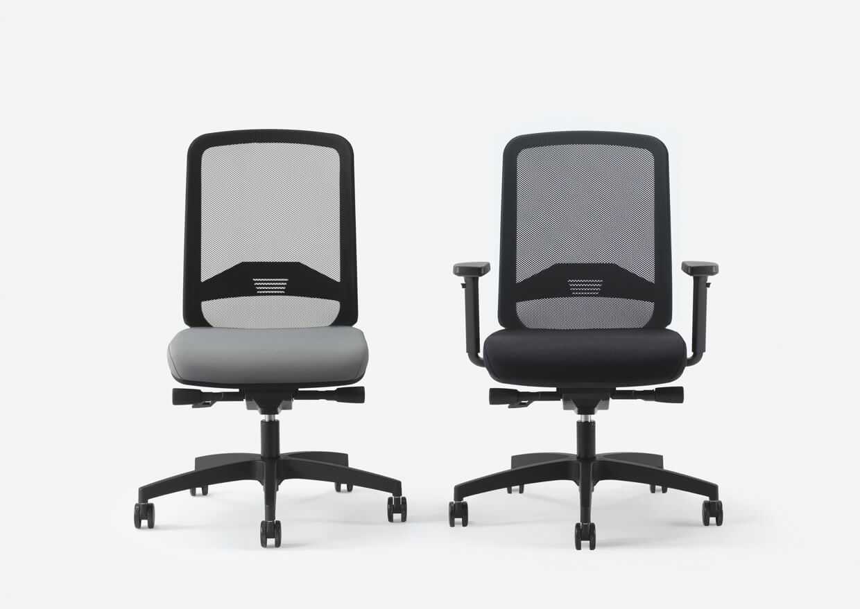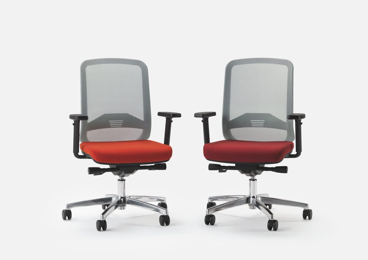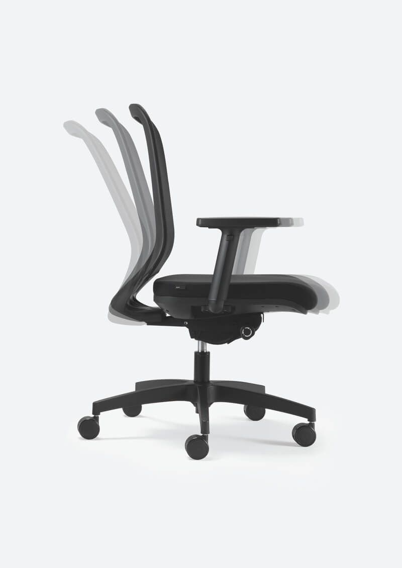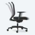 Seduta operativa con schienale in rete o imbottito, sedile in schiumato e meccanismo sincronizzato, completo di traslatore di seduta.