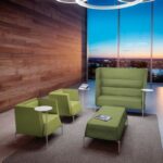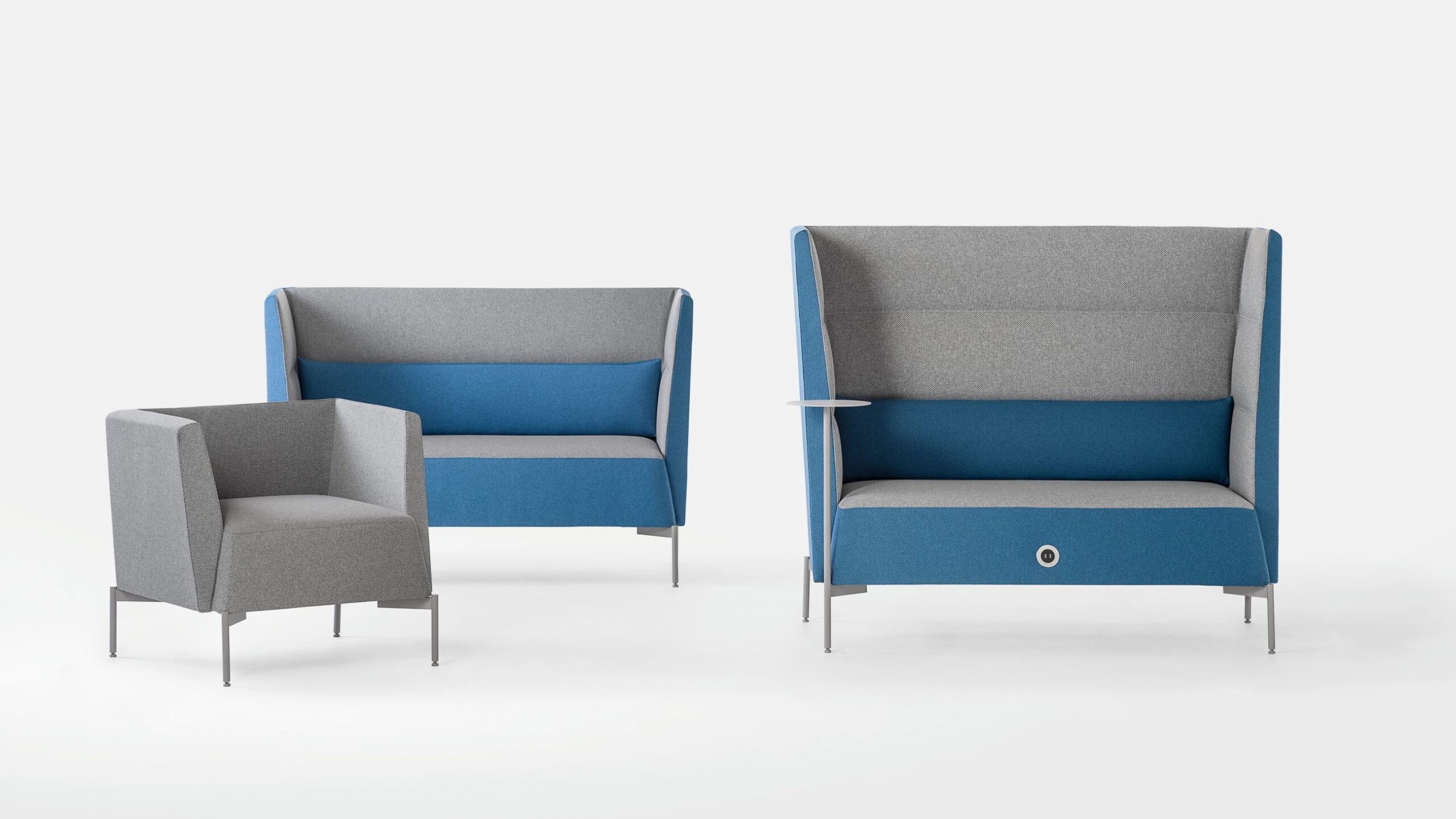 La serie Kendo, design Franco Driusso, è composta da poltroncine e divani su piedini in acciaio verniciati in 5 diverse finiture e con rivestimenti monocolore e bicolore. Possono essere a schienale alto, medio e basso, con possibilità di avere un tavolino rotante in tinta con i piedi. Completano la gamma le versioni pouf a uno o due posti. Le sedute Kendo sono infine proposte con rivestimento monocolore o rivestimento bicolore. I divani Kendo sono certificati UNI EN ISO 354-2003 per l’assorbimento acustico e possono essere accessoriati di doppia presa USB per la ricarica dei dispositivi mobili.