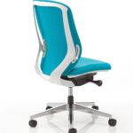 La morbida imbottitura del sedile è modellata per fornire supporto alle cosce e ai glutei, evitando che si sviluppino punti di pressione. Lo schienale è curvato per adattarsi alla curva naturale della colonna vertebrale, con un cuscinetto lombare regolabile per il supporto della parte inferiore della schiena. Il telaio si muove dolcemente con i movimenti dell’utente, mantenendolo centrato sul sedile senza inclinarsi verso entrambi i lati.