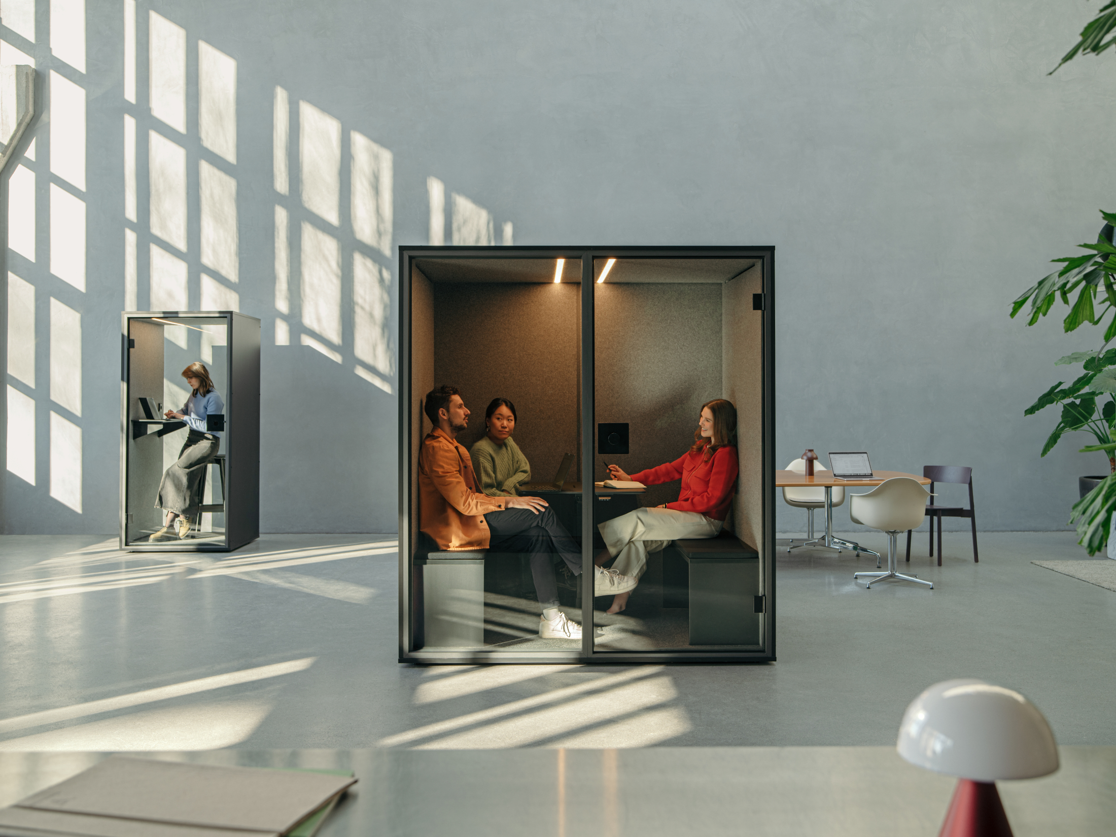 Soluzioni acustiche e spazi dedicati per call e videocall riservate, anche in open space.